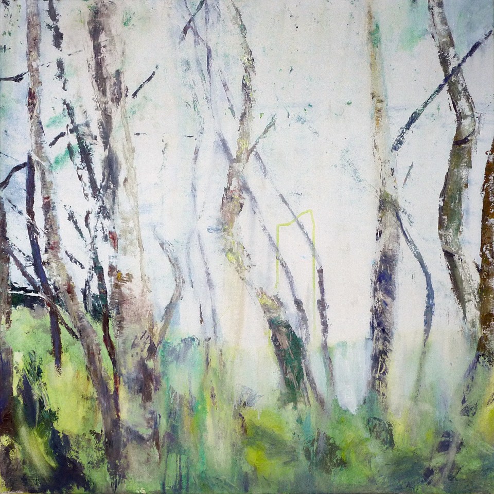 1 Birches, Silver Walk. Ardnamurchan ← Previous Next → ‘Birches, Silver Walk. Ardnamurchan’. Oil on 31×31″ canvas. Rose Strang 2022