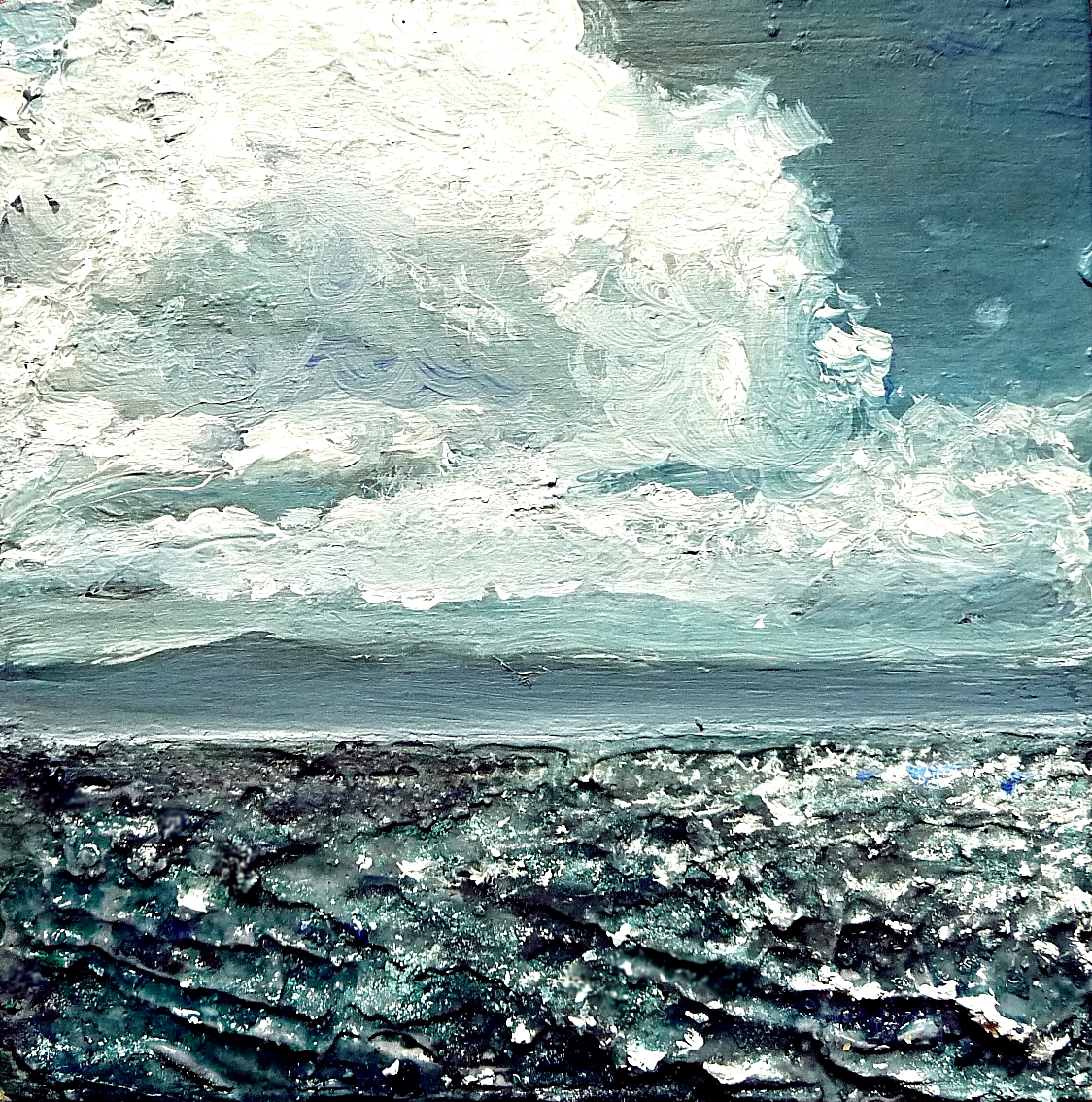 Eigg Series. No. 3. Acrylic, ink and salt on 5×5 inch wood