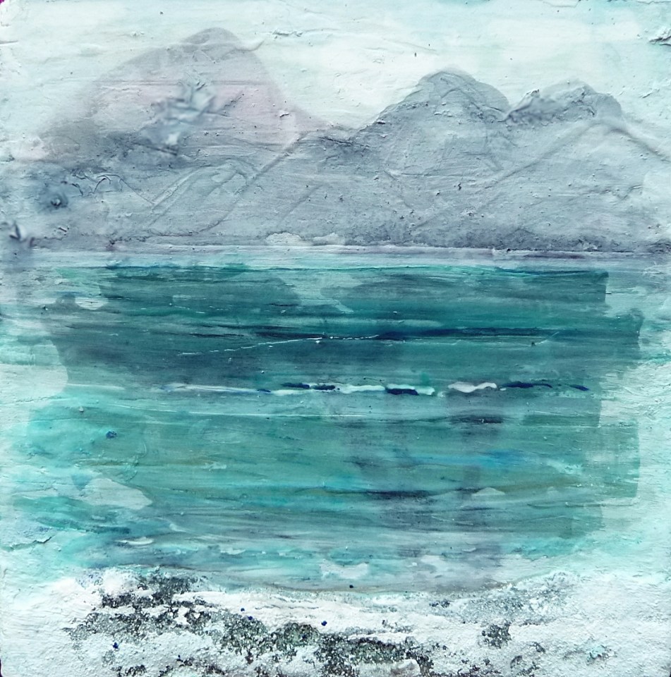Eigg Series. No. 8. Ink, sand and acrylic on 5×5″ wood