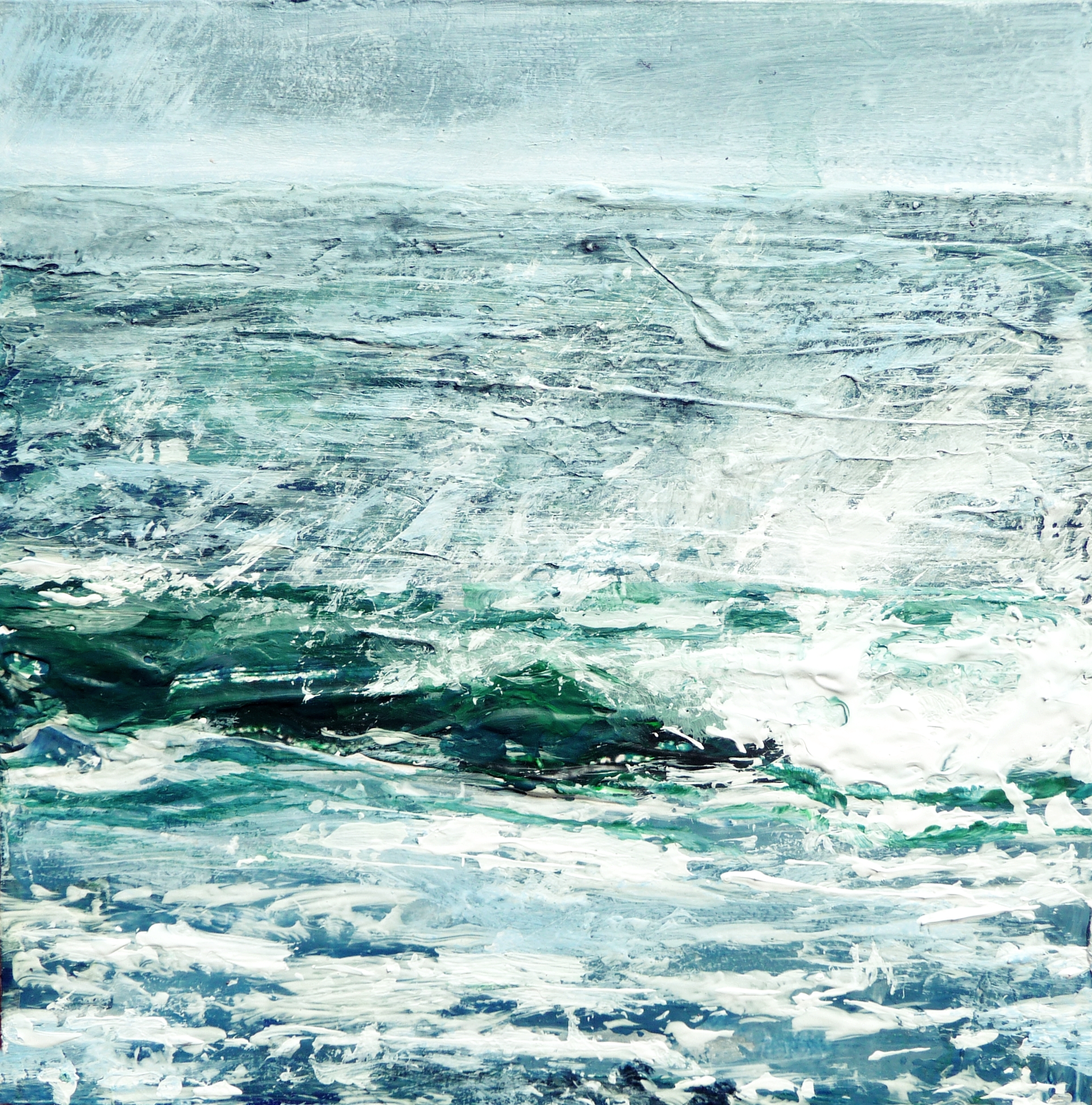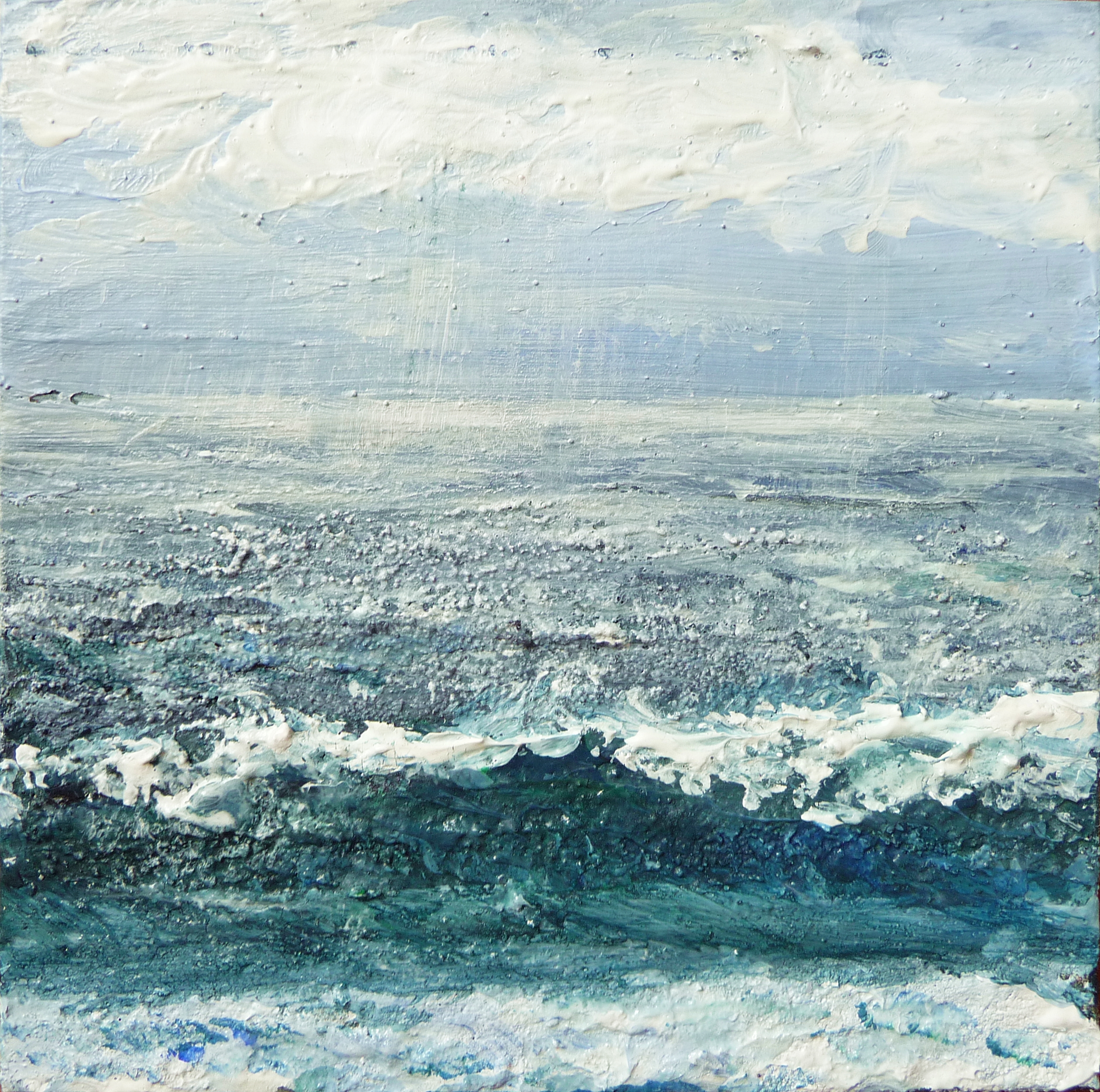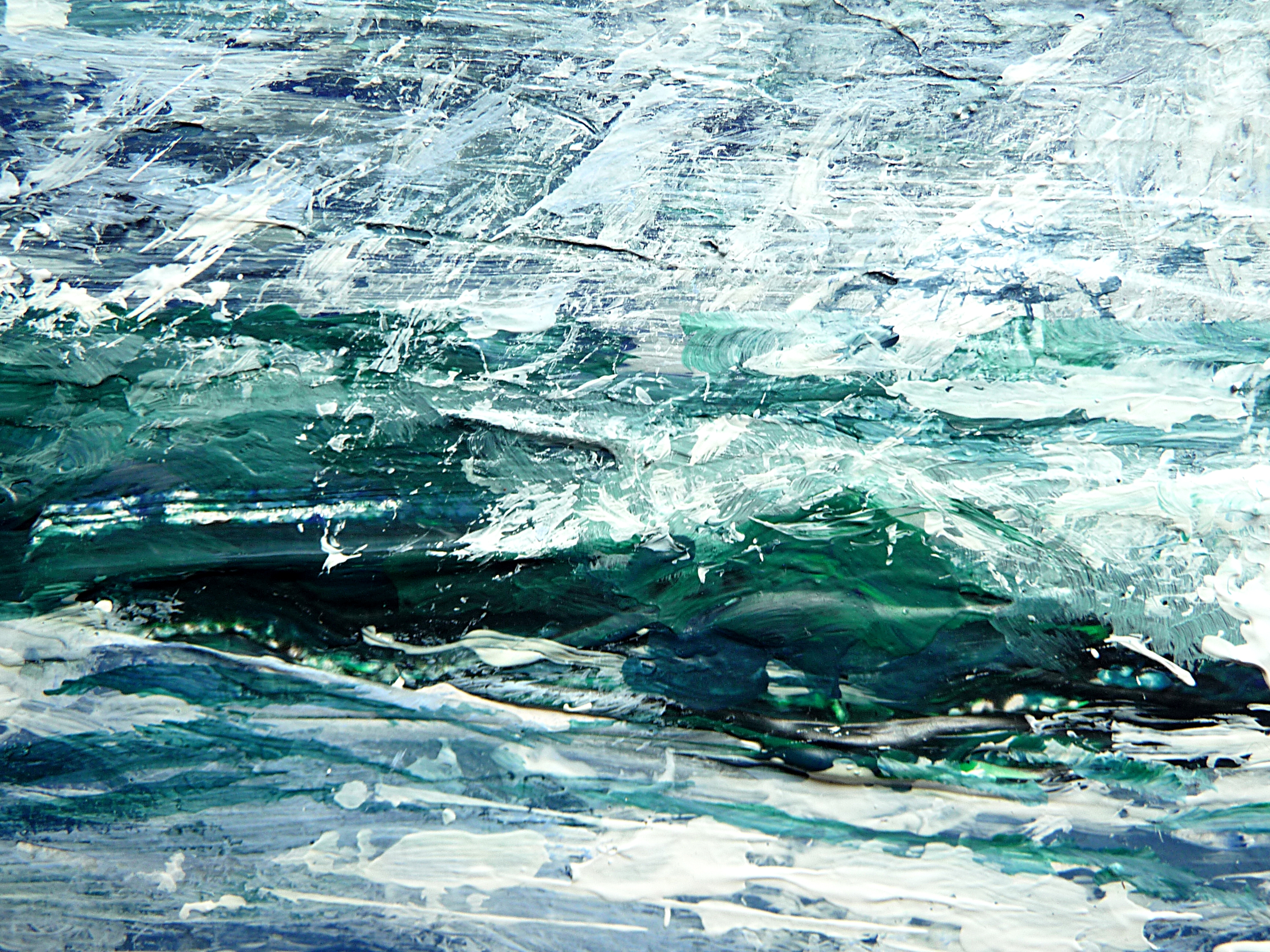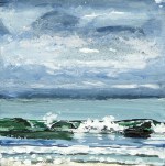 Today’s painting; Sea-spray and turquoise wave in Singing Sands Bay.