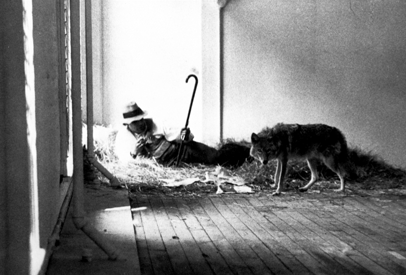 On first meeting Beuys, while on parole, Boyle remarked ‘I am the coyote’. He’d seen Beuys’s work from 1968; ‘I like America and America Likes Me’. In which Beuys spent three days in a small space with a coyote. The coyote, similar to a fox in the UK, is seen as vermin in America.