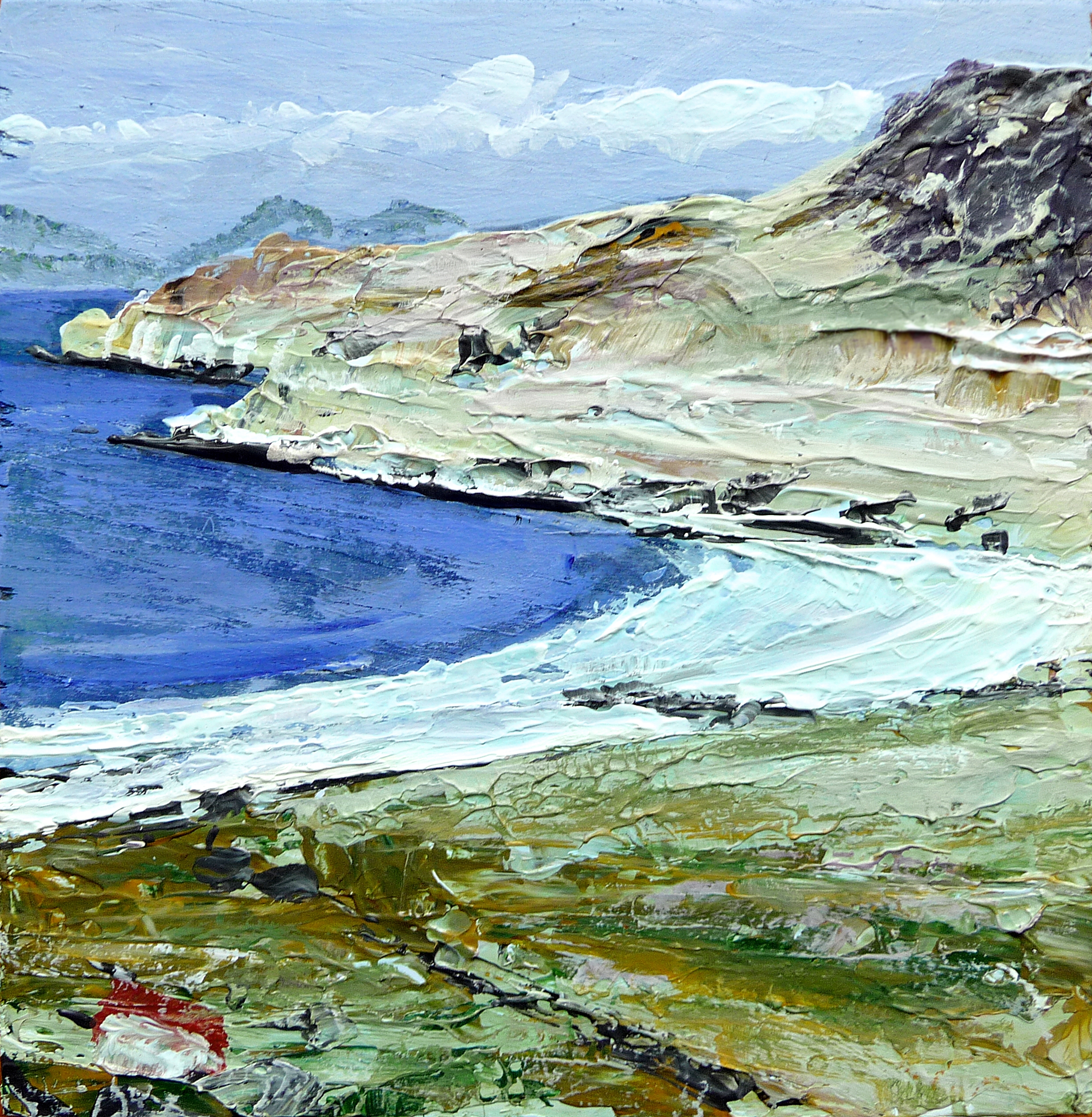 Today’s paintings; waves in Singing Sands Bay. Showing contrast between ink and acrylic