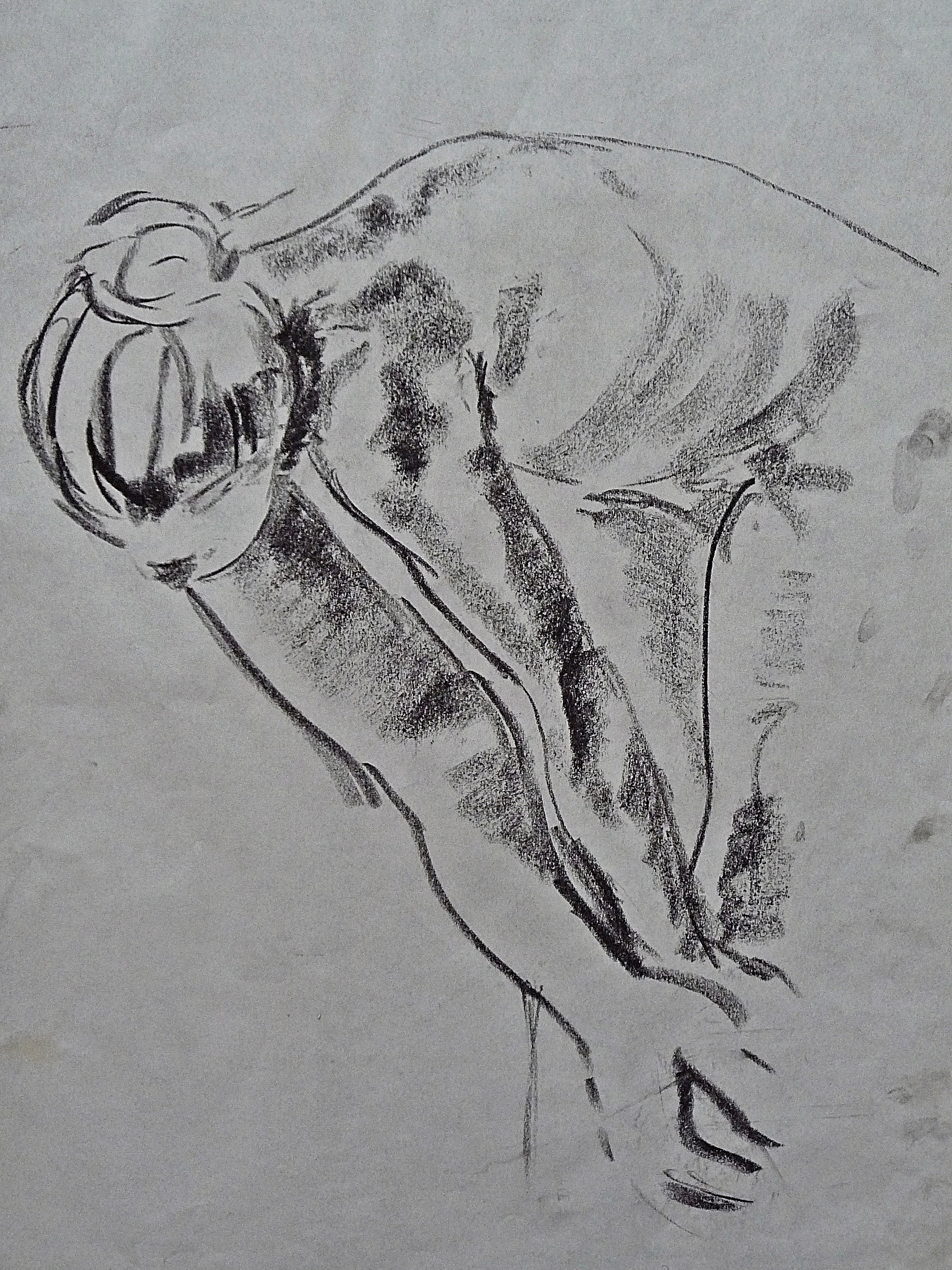 Later in my first year in art foundation class. We’d spend 7 hours at a time drawing from life under the tutelage of Bill Gillan (he gave great advice and went on to become the President of the SSA – Scottish Society of Artists). I’ve just looked online, to discover that he’s now very unwell, and I’ve also missed a recent exhibition of his work, so I hope there’s another. Link to exhibition Here where you can see a couple of his paintings)