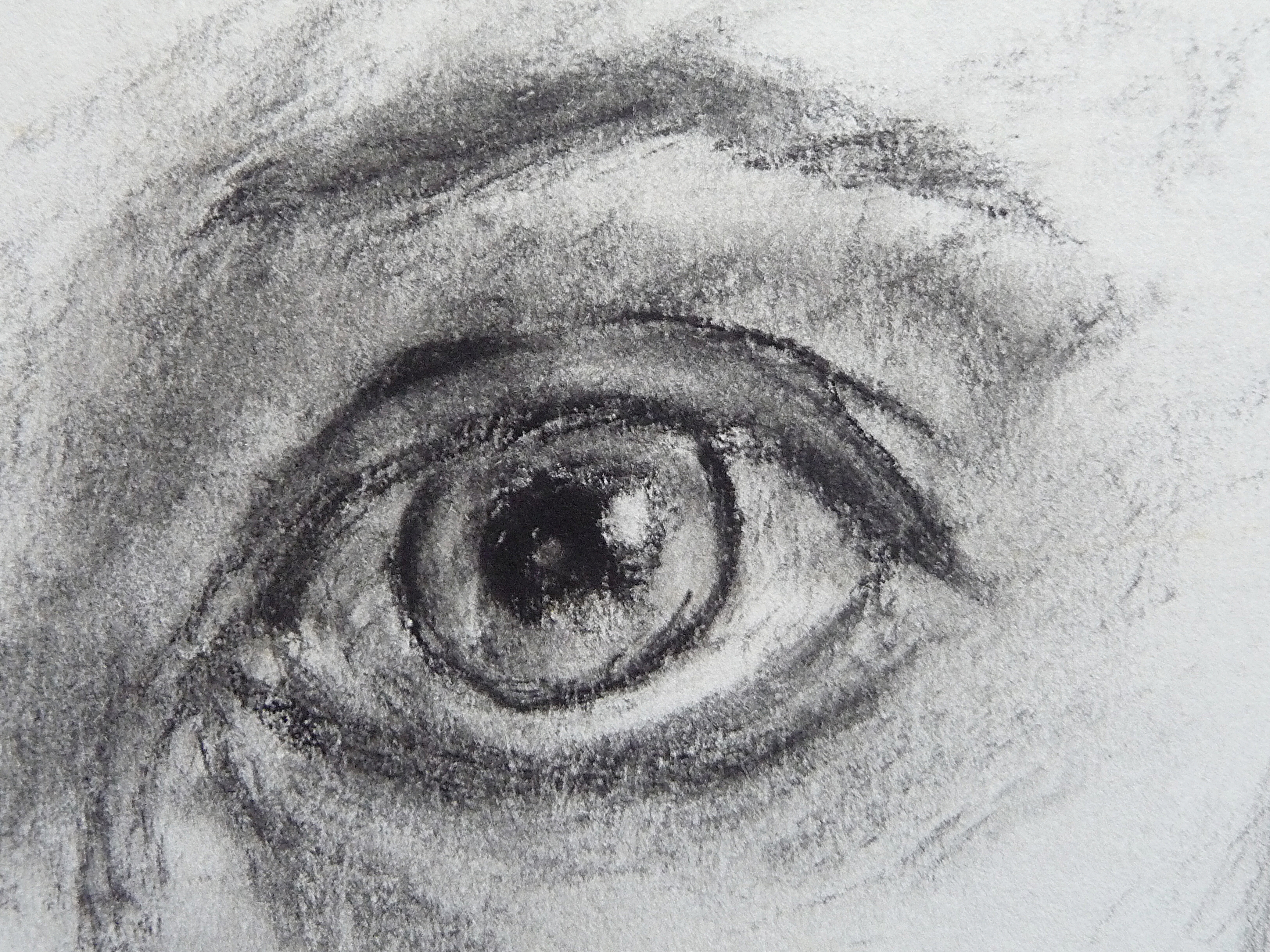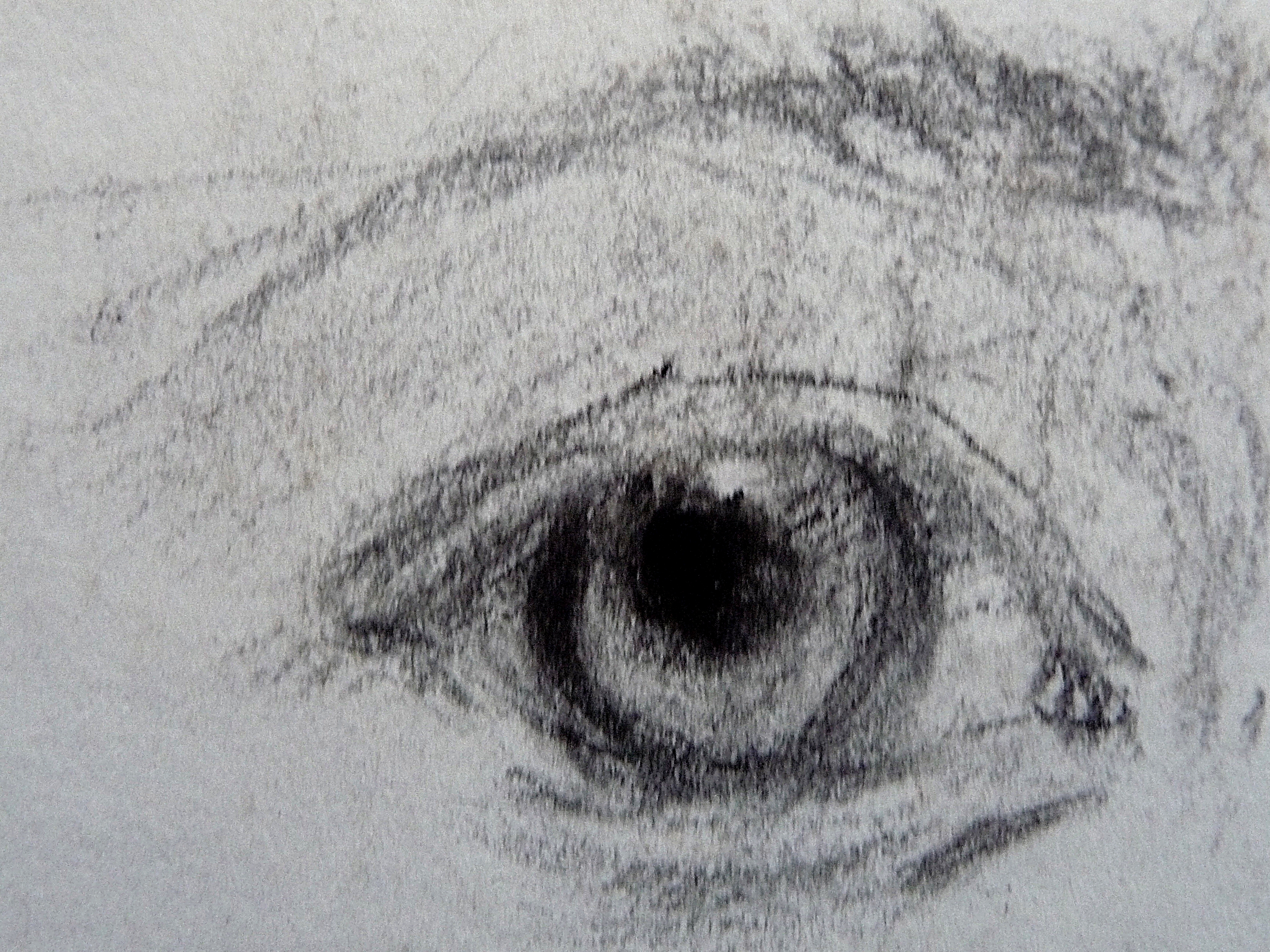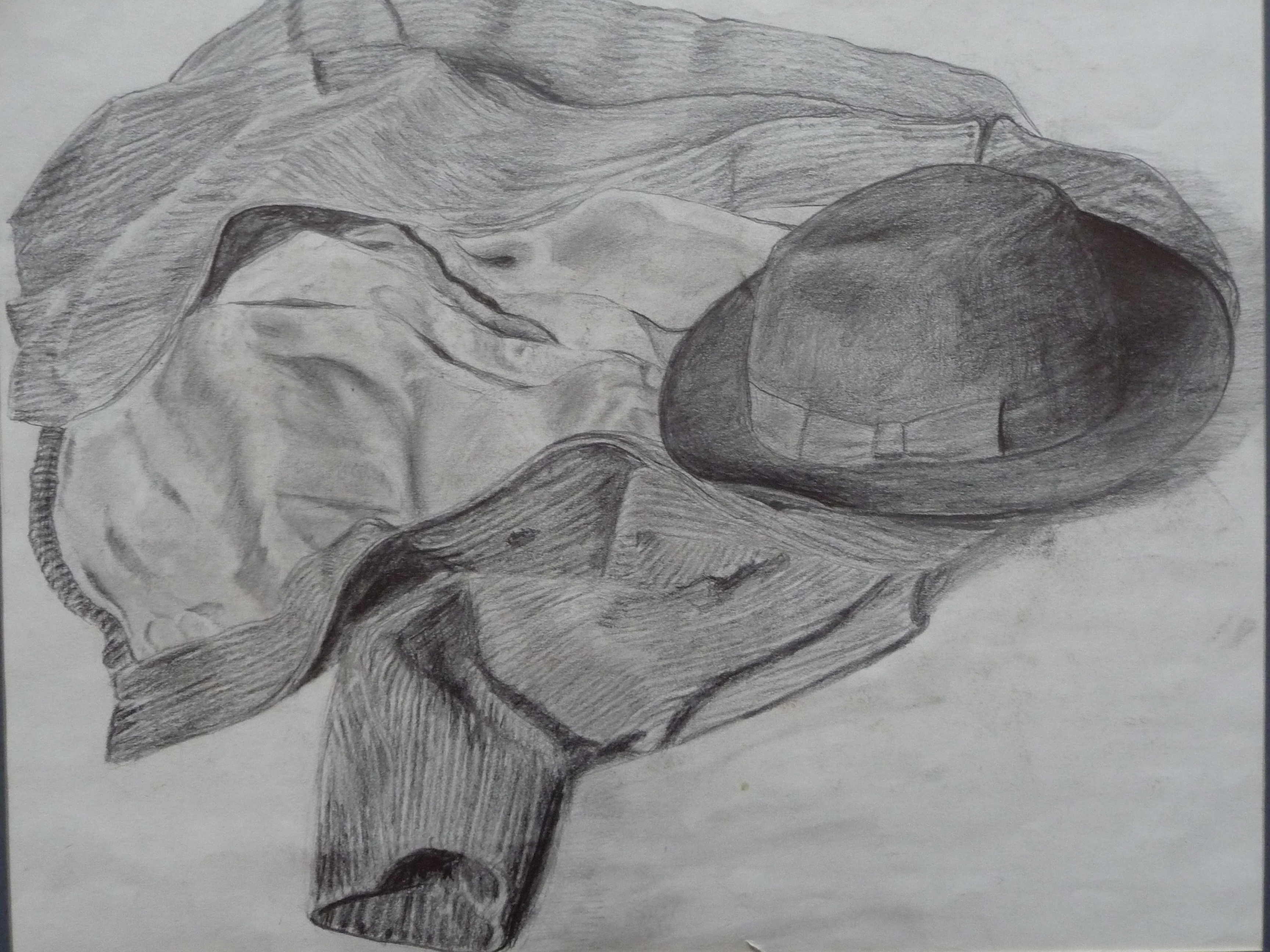 Very detailed, but no expression. I’ve tried to draw everything in an attempt to get it right. Rather than look for the essentials I’ve included every crease and fold. I was probably standing about an inch away from the paper! As a consequence it looks un-spontaneous and kind of…adolescent! But it doesn’t make me cringe, I can see I was committed at least.