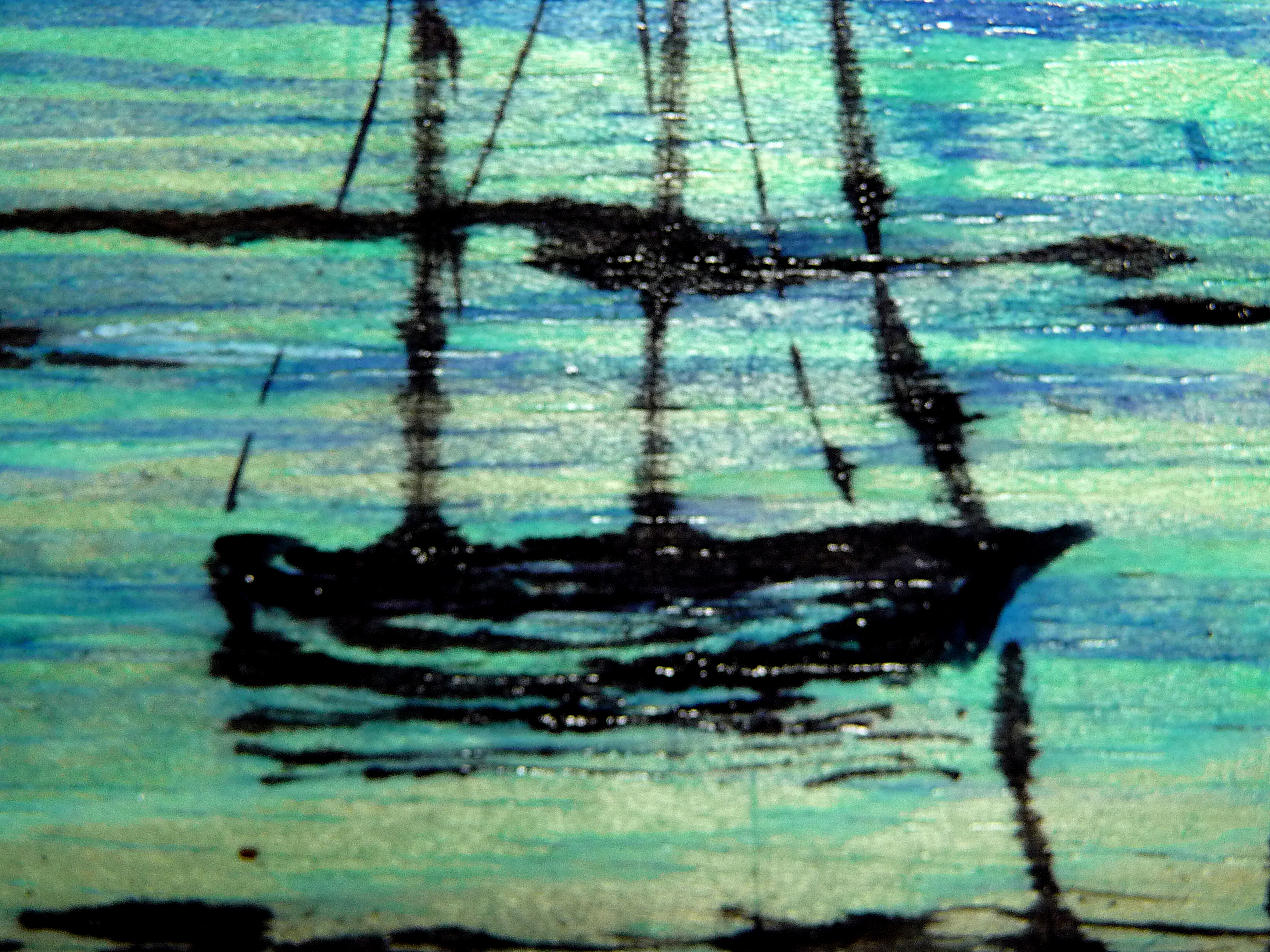 Today I’m offering two paintings for £55 – two ink on wood sketches of a boat in Eigg’s Pier Bay. (Also, as mentioned I’m away for a week so the next post will be Saturday 12th May. I’m always contactable by email at rose.strang@gmail.com)