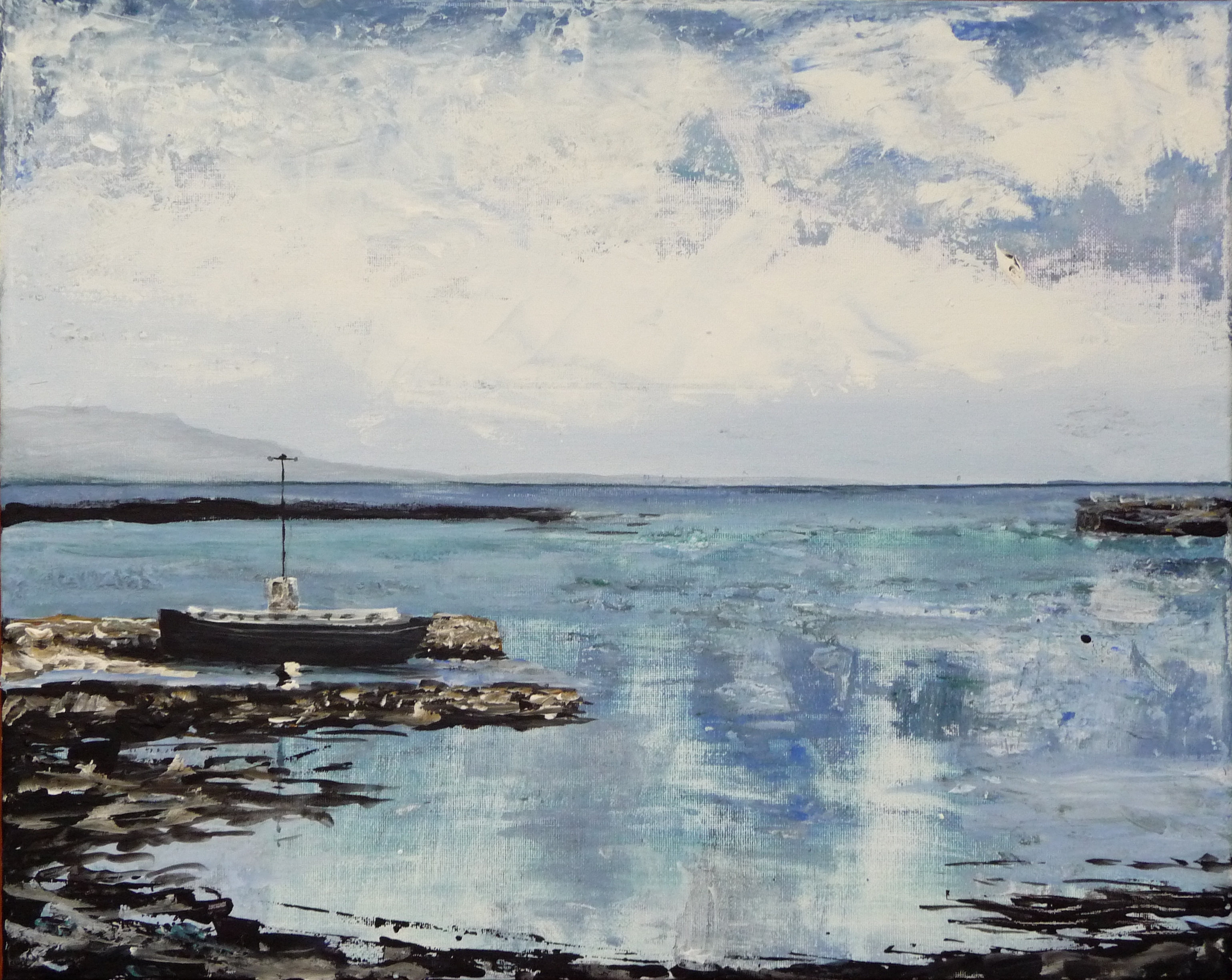 ‘Boat in Pier Harbour 1’. Acrylic on 20×16″ canvas