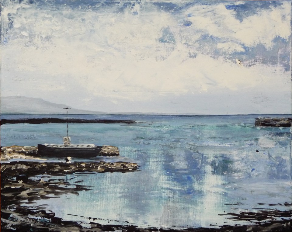 ‘Boat in Pier Harbour 2’. Acrylic on 20×16″ canvas