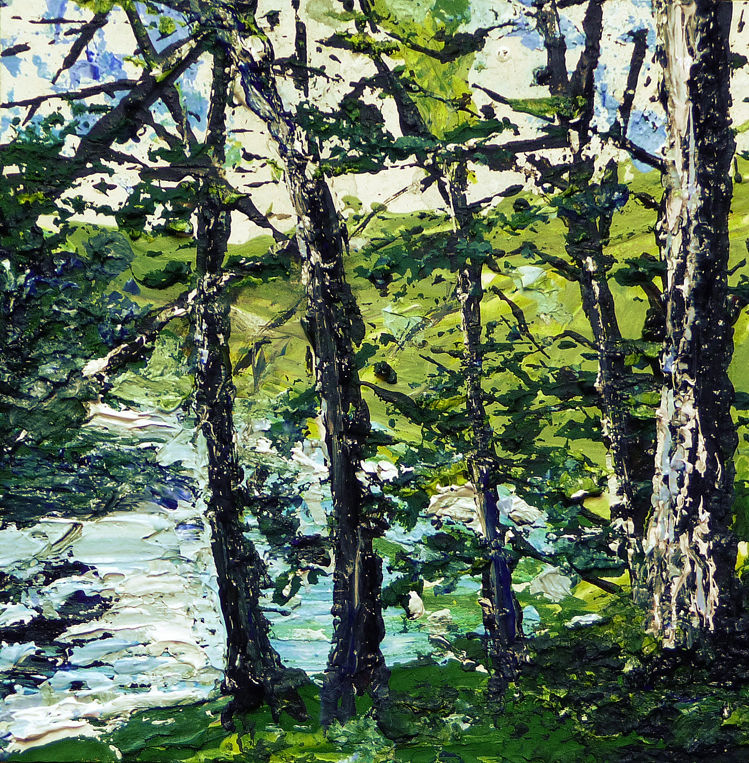‘River Tweed near Peebles 1’. Acrylic on 5×5″ wood. Rose Strang ‘River Tweed near Peebles 1’. Acrylic on 5×5″ wood. Rose Strang 2014
