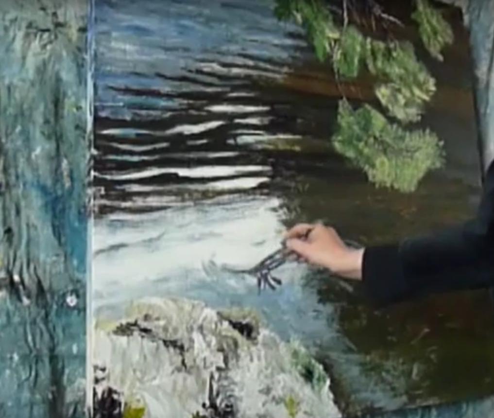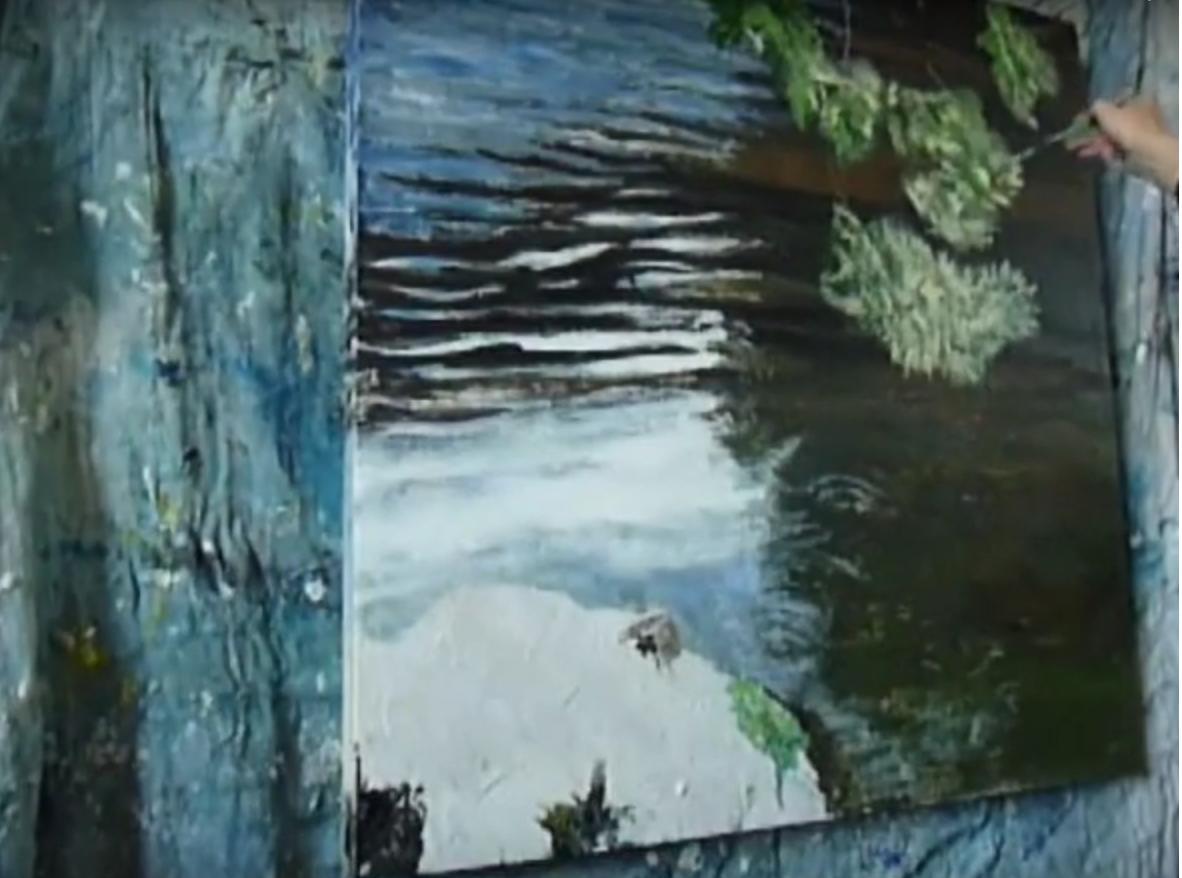 For the bottom left rock, I began to use a pallete knife. Mostly because this adds thick texture and interest, a nice contrast to translucent water.