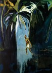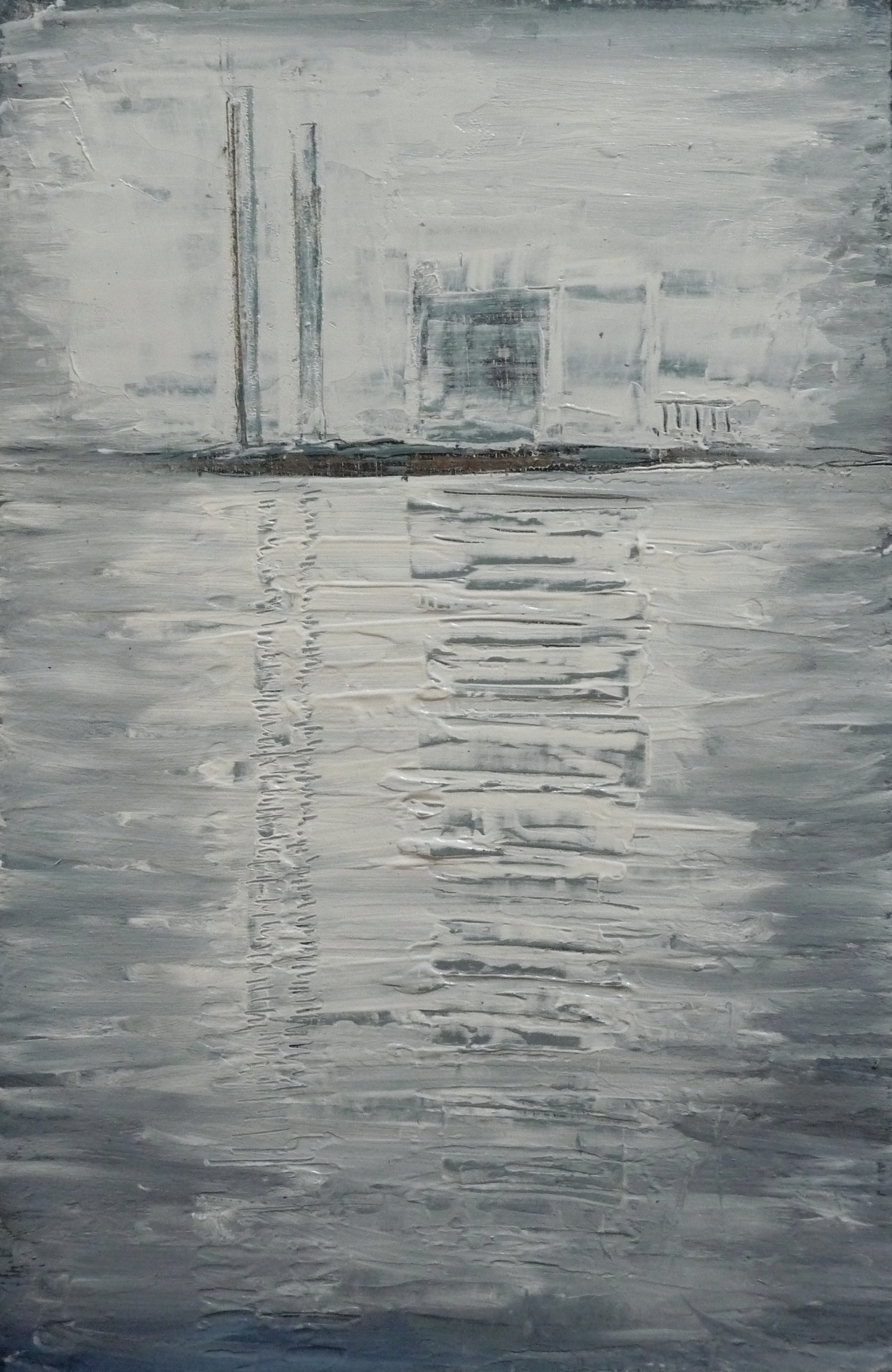 I’m playing around with this painting in an experimental way, somewhere in the process I’ll maybe wipe out the whole thing and start again. I quite like the layered look and texture this gives to a finished painting, and it echoes the themes I’m exploring of impermanency, which is a shorthand for concepts I’m exploring instinctively rather than intellectually at the moment. I’ll know when the mood feels right.