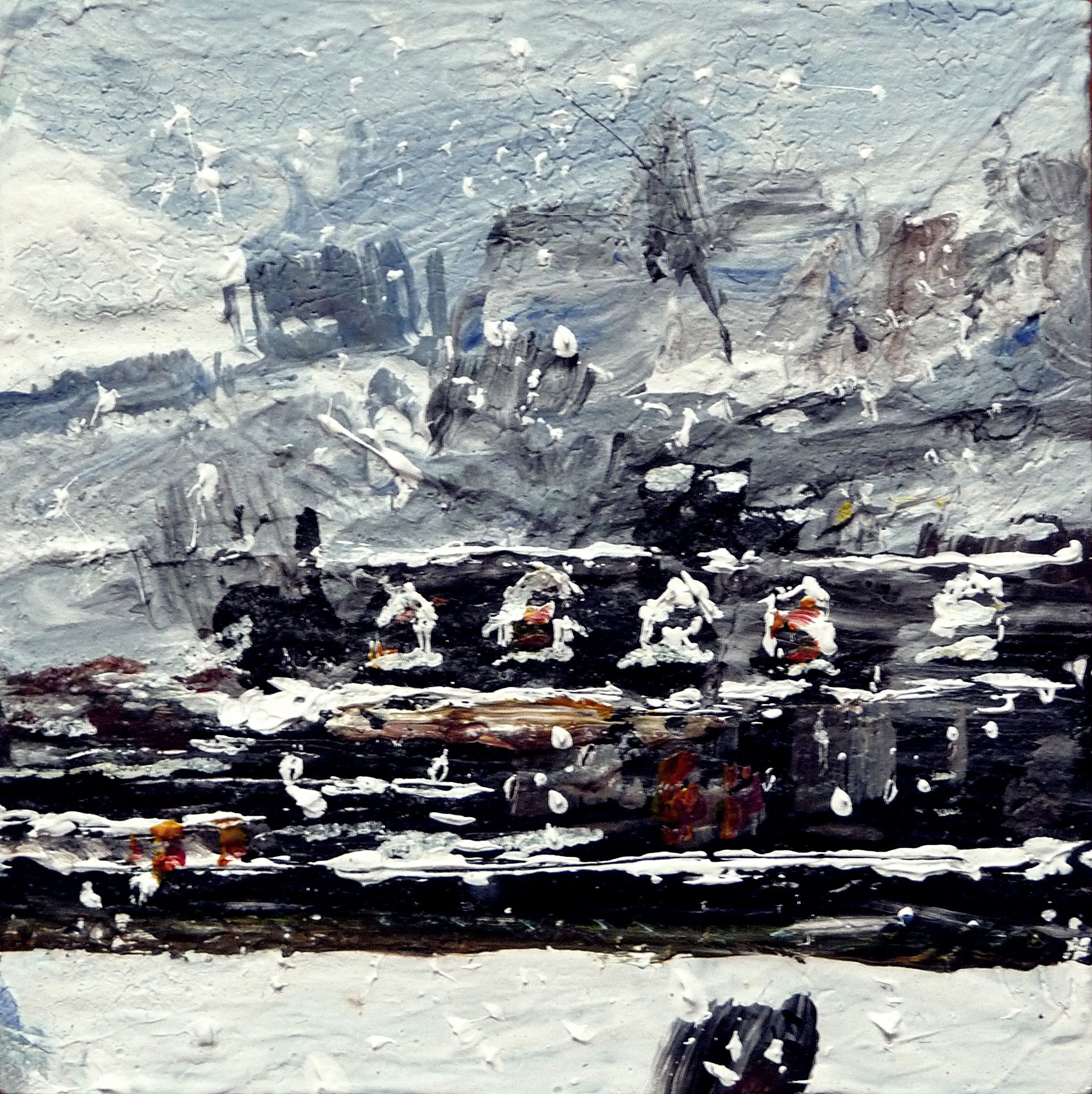 ‘Snowscapes. No 2’. Acrylic on 3.5×3.5″ wood