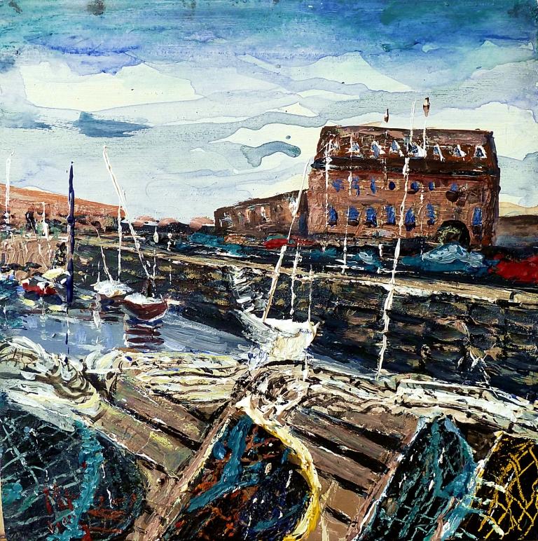 North Berwick Harbour ← Previous Next → Sold. £85. ‘North Berwick Harbour’. Mixed media on 8×8″ wood panel