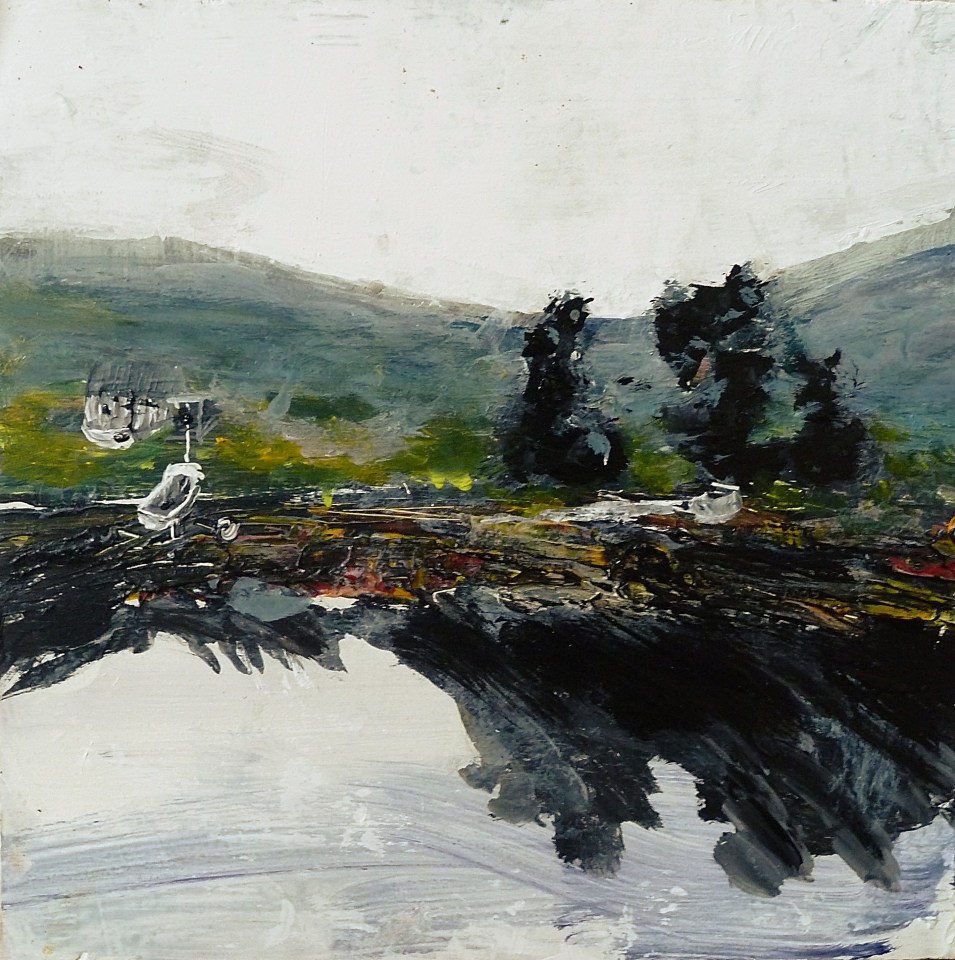 ‘Harris, Sea Loch 2’. Mixed media on 10×10″ wood