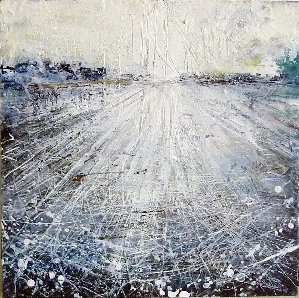 Winter 9, Skating. Mixed media on 10×10″ wood panel. £150