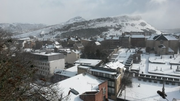 Edinburgh has just been voted the most popular tourist destination in the UK, and living here can make us a bit blasé about the features that make the city so unique and appealing, but the recent snow seemed to bring everyone out of winter hibernation. Arthur’s Seat was thronging with folks enjoying the snow – kids on sledges, a plethora of snowpeople! I slid about in the snow with my pal Donald, and it was great to see and experience…