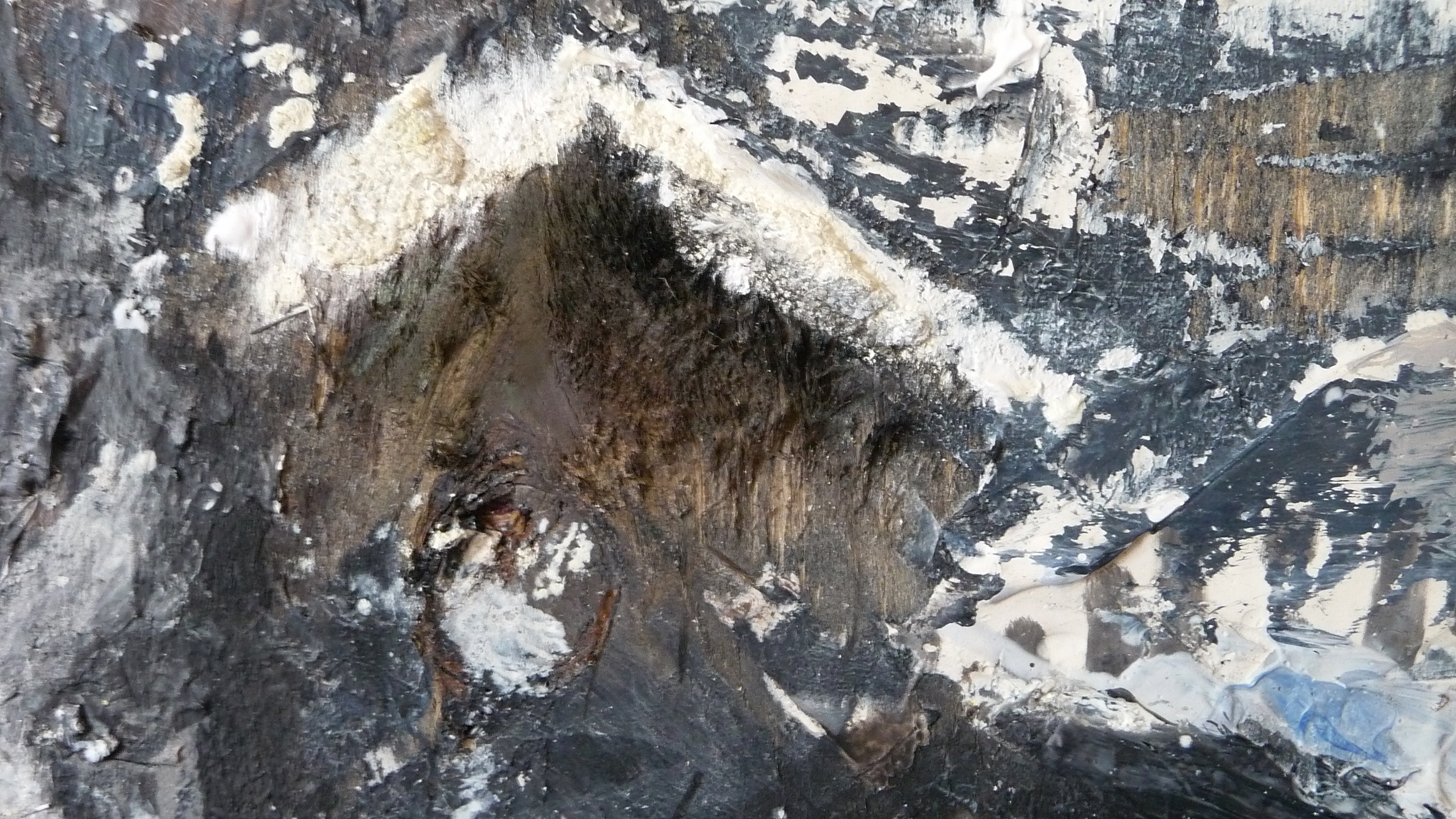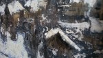 I also wanted to get across the ‘feel’ of the Old Town, with its medieval buildings and wood timbers, hence the exposed wood in the painting and roughened edges, blurring old and modern buildings. Some close-up details below showing texture …