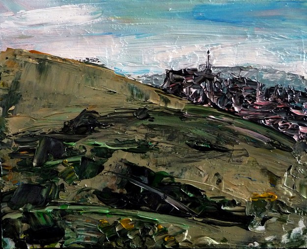 For the St Anthony’s Chapel painting, I was a bit inspired by the strangely beautiful atmosphere of Medieval paintings, such as those featured in the Medieval manuscripts – ‘The Book of Days’ (example below) I might work on that approach more.
