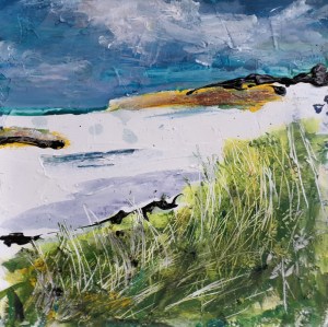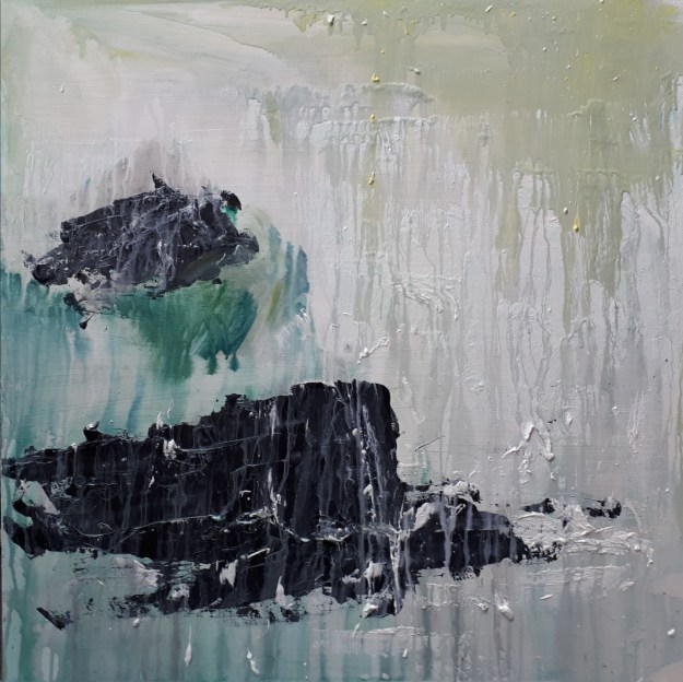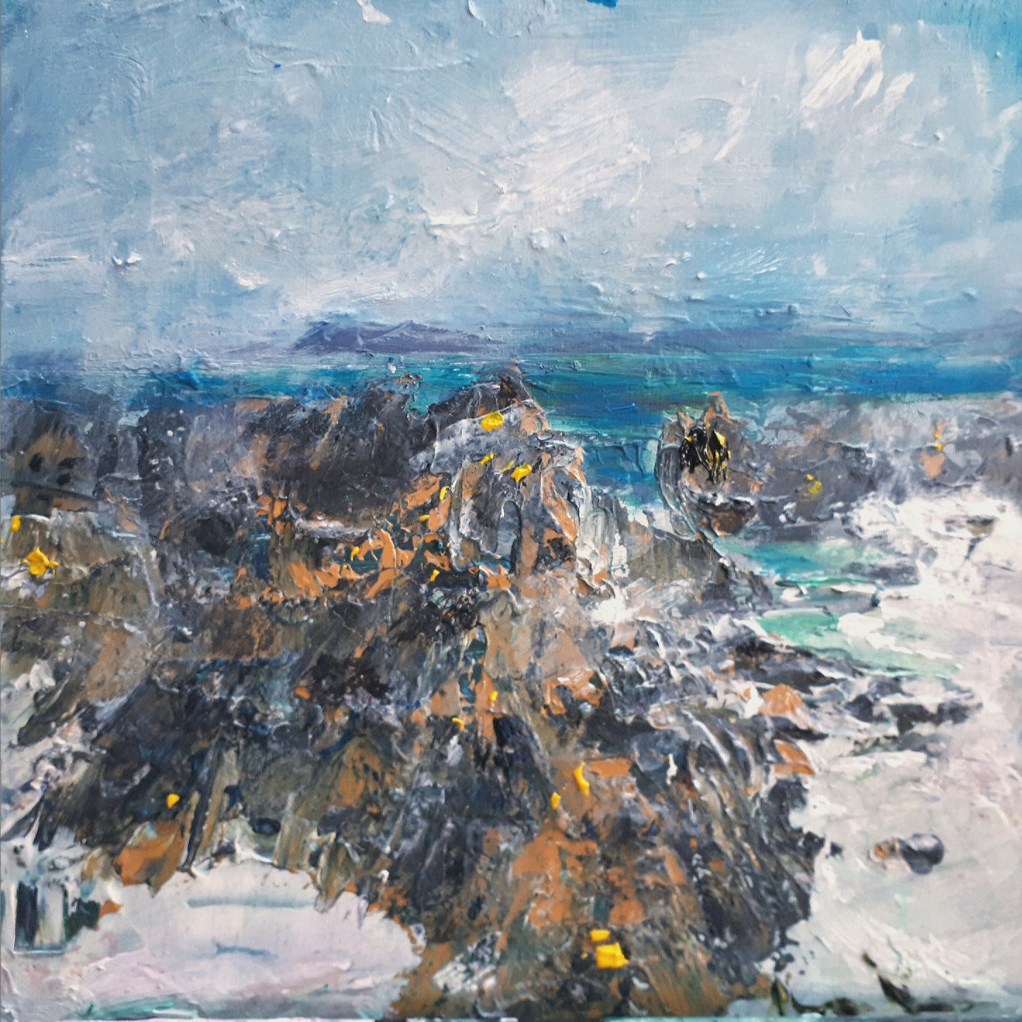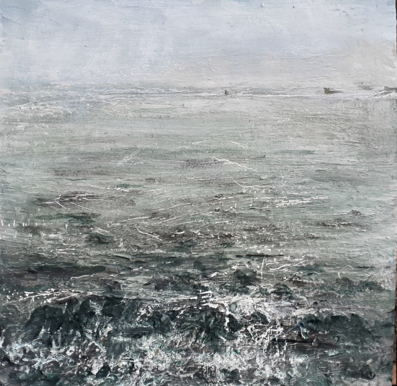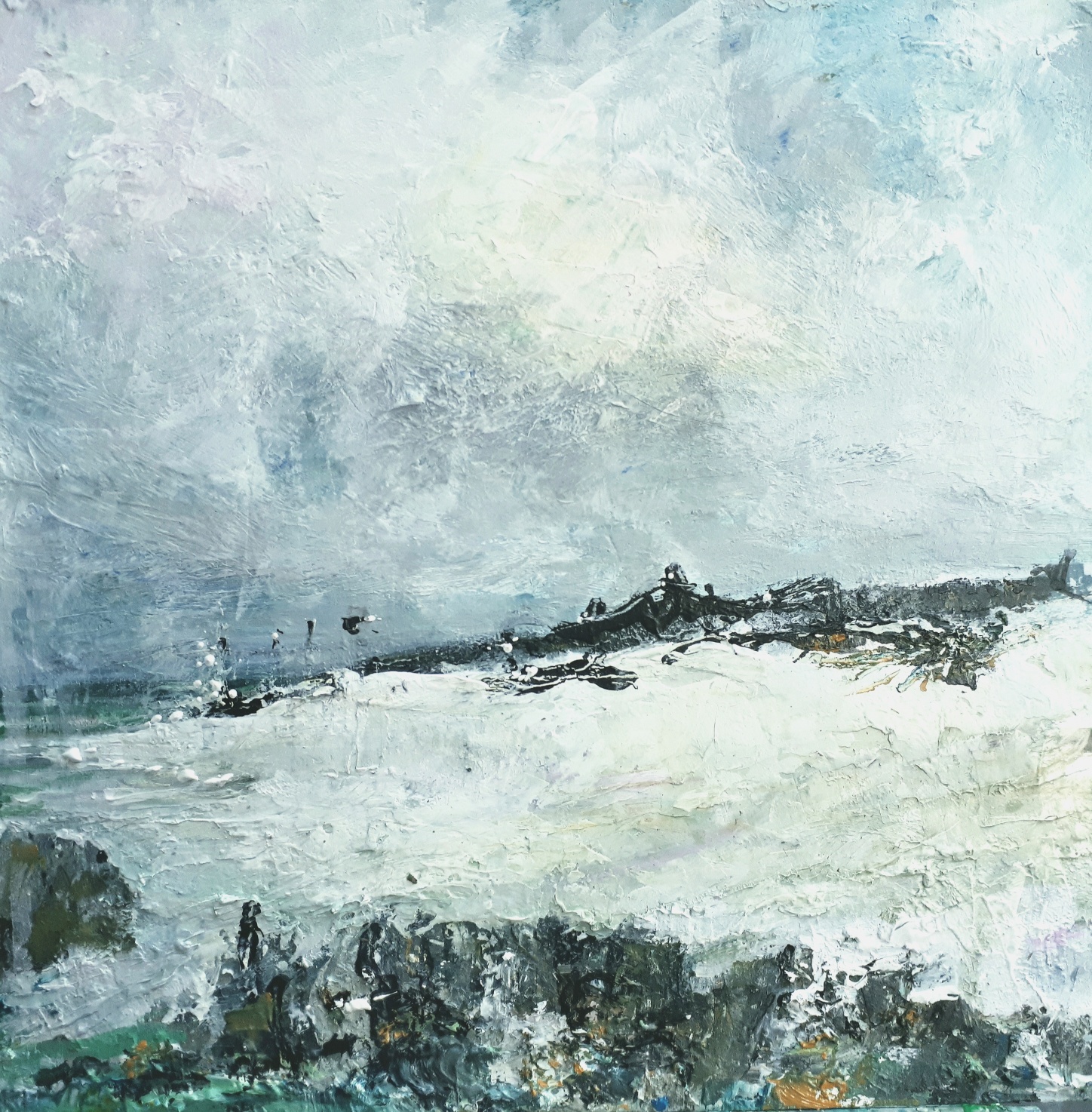 ‘Pisces Moon. Isle of Iona, October’. Mixed media on 10×10″ wood panel. Rose Strang 2018