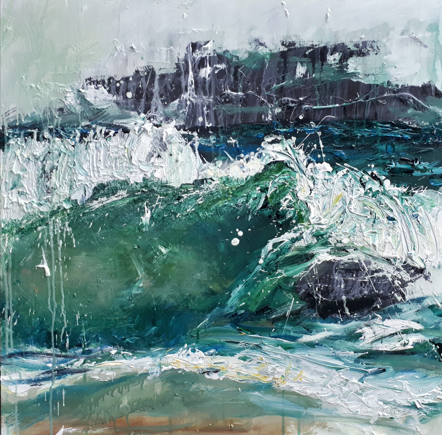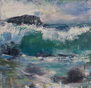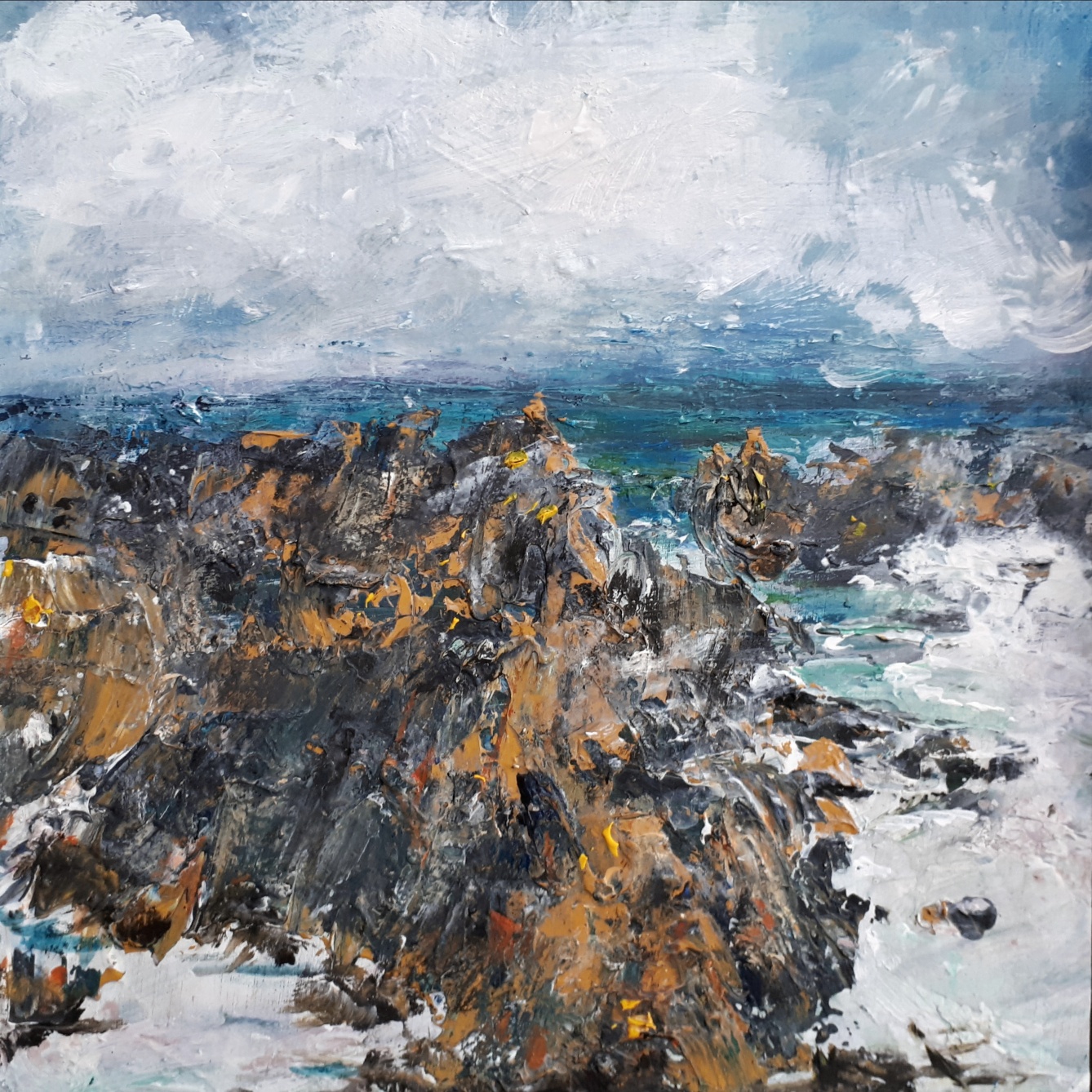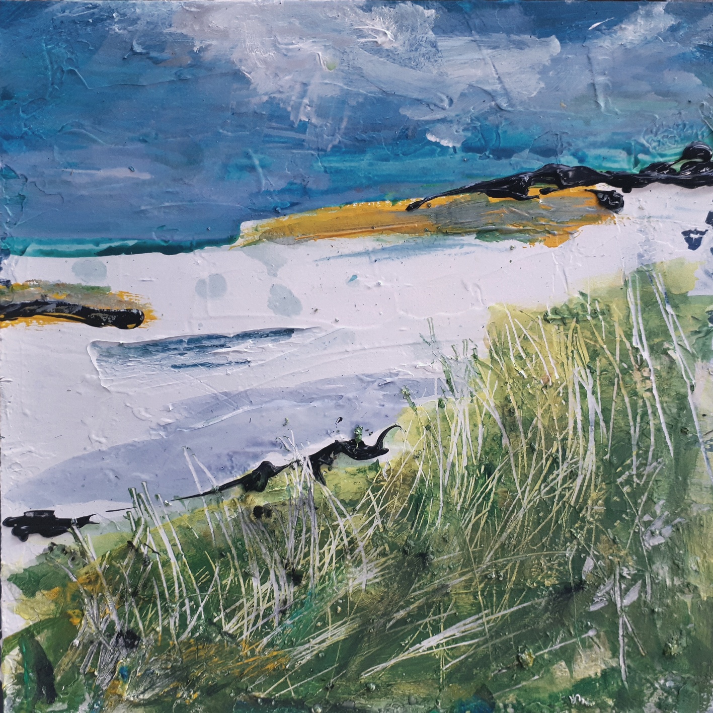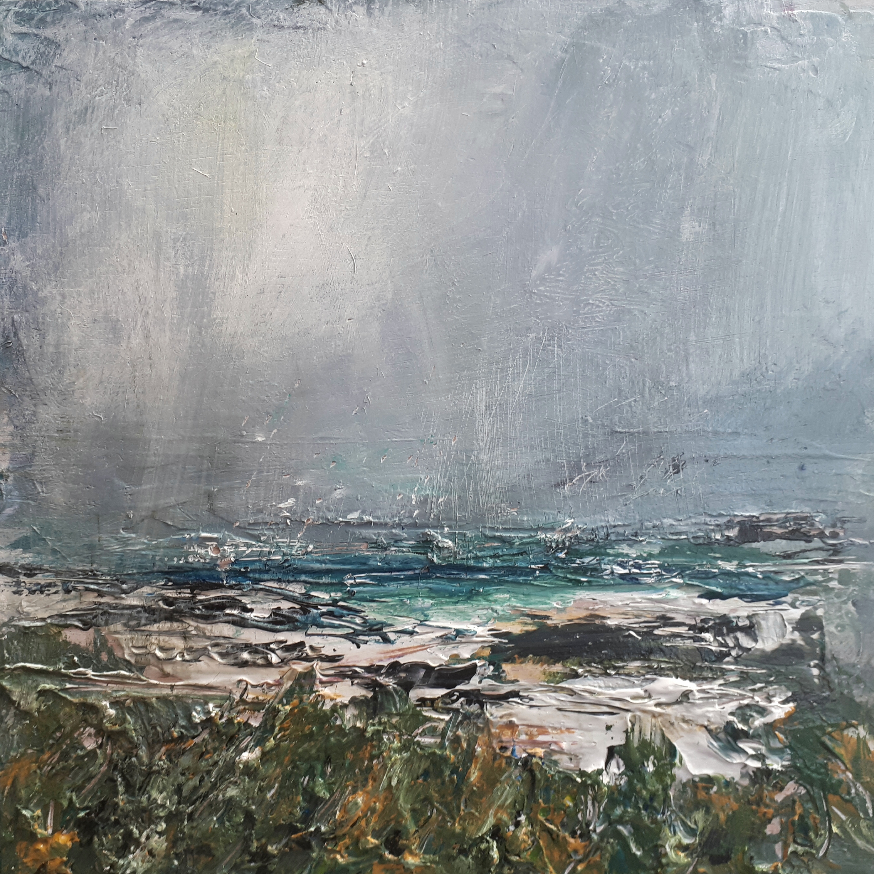 ‘Pisces Moon. Isle of Iona, October’. Mixed media on 10×10″ wood panel. Rose Strang 2018