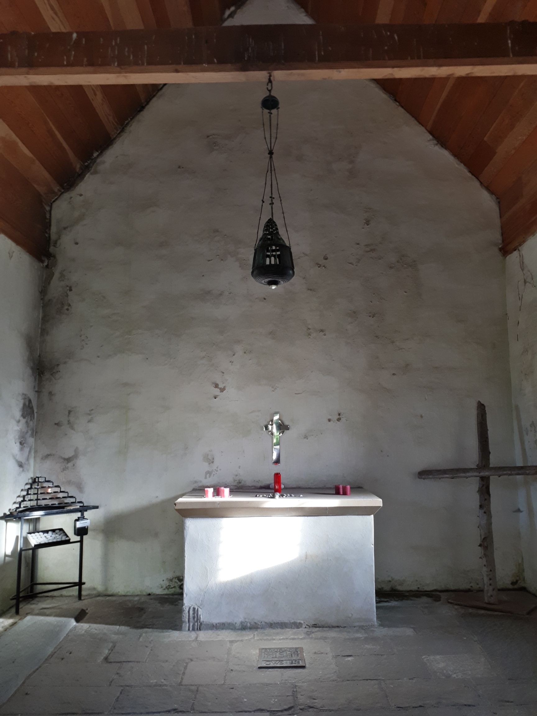 After painting today, I bumped into Mary at St Columba hotel and we visited St Oran’s. Chapel ( the oldest intact building on the island, 11th cent.) I love those cloud-like shapes in the wall plaster.