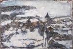 - Sold. ‘Edinburgh Snow (Arthur’s Seat and Royal Mile from Regent Road). Mixed media on 24×16″ found wood panel. Rose Strang 2018. (un-framed £375)