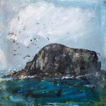 - ‘October Tide, Isle of Iona’. Mixed media on 10×10″ wood panel. Rose Strang 2018.