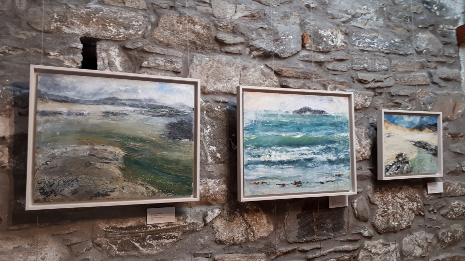 Framed paintings, in situ at the Resipole Gallery