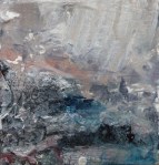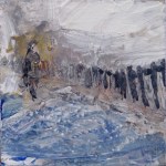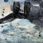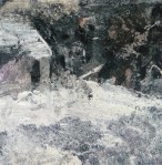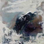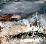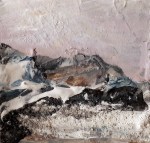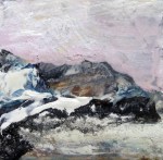 ‘Giant Snowballs’ was inspired by snow sculptures on Arthur’s Seat, Edinburgh and ‘Wolf’ was inspired by watching the Seven Worlds series narrated by David Attenborough – the wolves were viewed through heat sensitive cameras, adding to their mystical presence – they looked primeval and otherworldly. I made a quick sketch in paint on canvas while watching, then surrounded it in thick layers of white gesso.