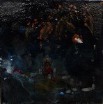 Sold. ‘Winter Series. Sacred Well. Mixed media on 10×10″ wood. Rose Strang. 2017