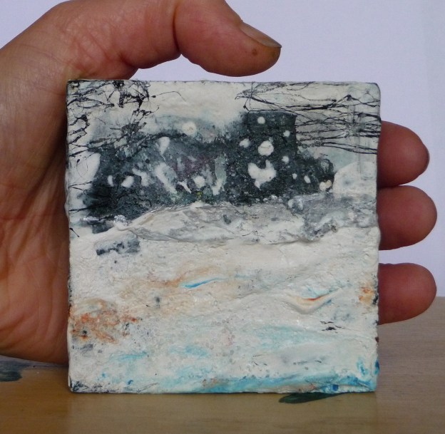 ‘Giant Snowballs’. Mixed media on 12×12 inch canvas. Rose Strang 2019. Unframed £290