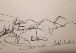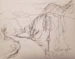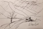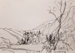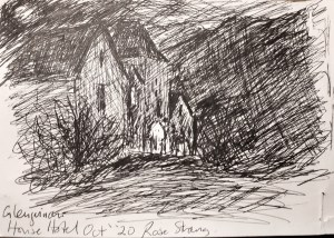 Back in the mists of time in my twenties, one of my favourite parts of the journey to the west coast – ‘the road to the isles’ – was the stop at Glenfinnan House. After the splendour of Glen Coe (my photos and sketches, from the moving car, below) you arrive at the top of Loch Shiel …