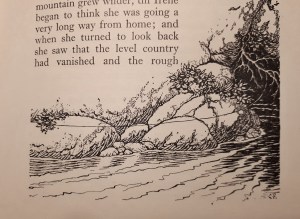 Most of all the October colours – misty russets and lilacs, flooded lochs and streams entranced me. I was reminded of George MacDonald’s descriptions of mountain colours and rain floods in The Princess and the Goblin.