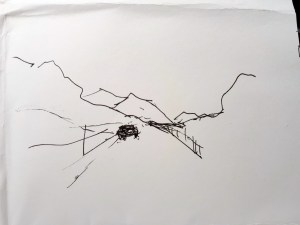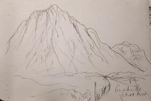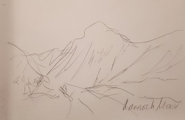 Above: A sketch from Rannoch Moor, going in to Glencoe. Rose Strang 2018