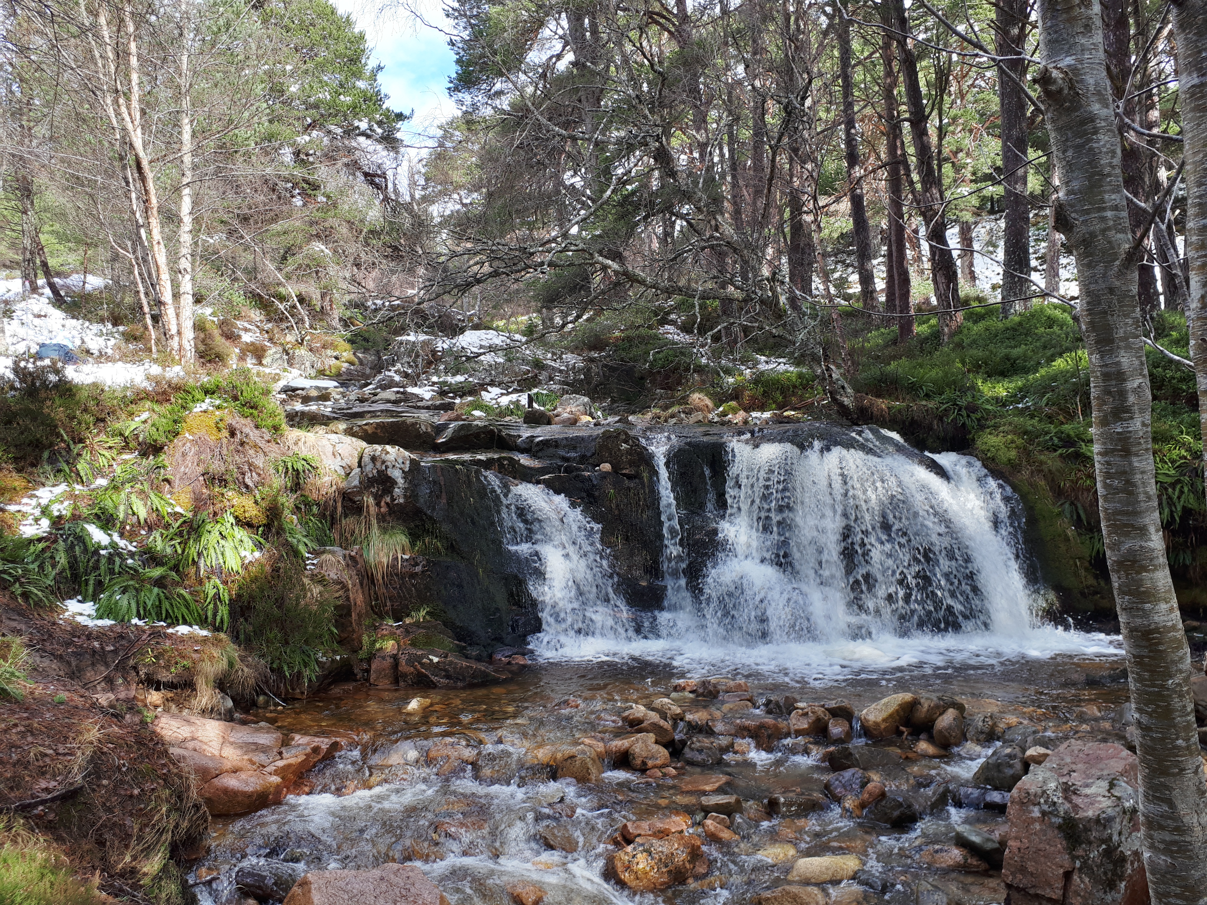 Waterfall, Glen Feshie. (Photo Rose Strang 2021)