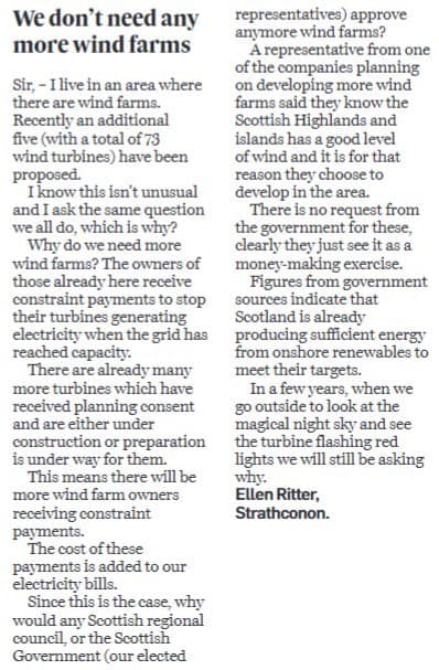 Lastly, here are two excellent letters/articles published by the Press and Journal (by two admins for Communities Before Power Companies) Elaine Ritter and Denise Davis …