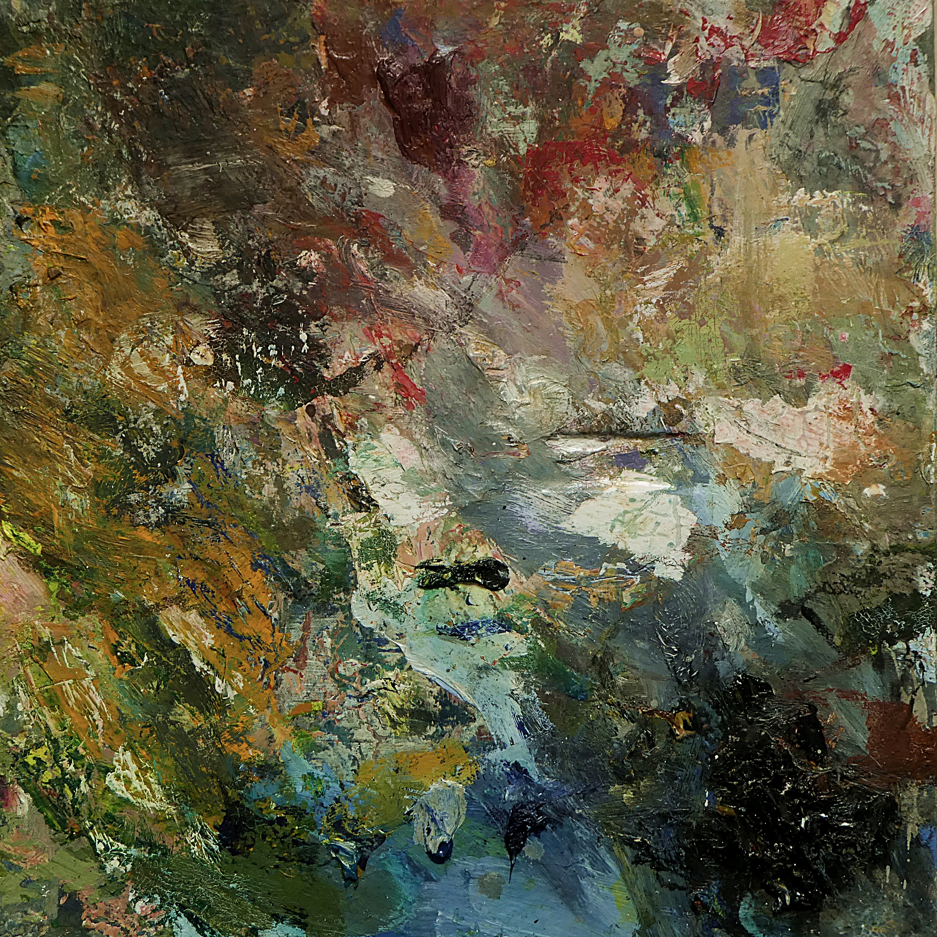 Maspie Waterfall. Acrylic on 17×16″ wood panel. Rose Strang 2024