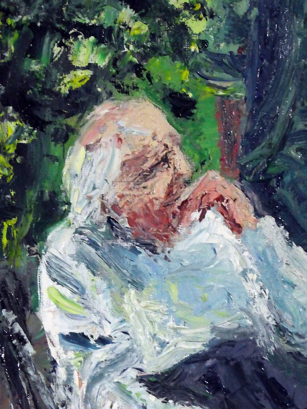 I find the figure of Richard Demarco easier to paint. Painting myself is proving a challenge though! It’s partly because I don’t have space to get into detail and the fact that I don’t want to paint in detail.
