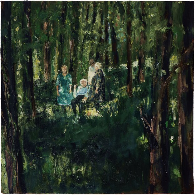 Forests seem to have always been associated with mystery, a search, sometimes the idea of freedom from authority, or the idea of spiritual seclusion. I’m a fairly instinctive painter – I don’t begin with a definite concept that I then execute precisely – far from it! I think this approach echoes what I find in landscape and why I paint it. Adding figures always brings tension – it makes the viewer ask more questions, especially when the group are so srangely placed as they are in this painting.
