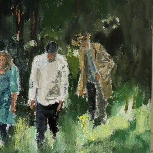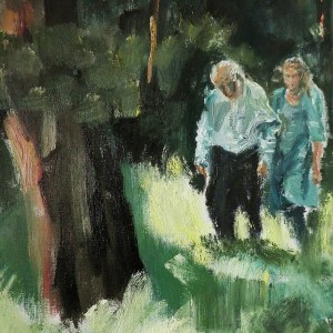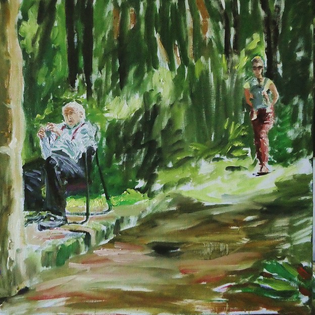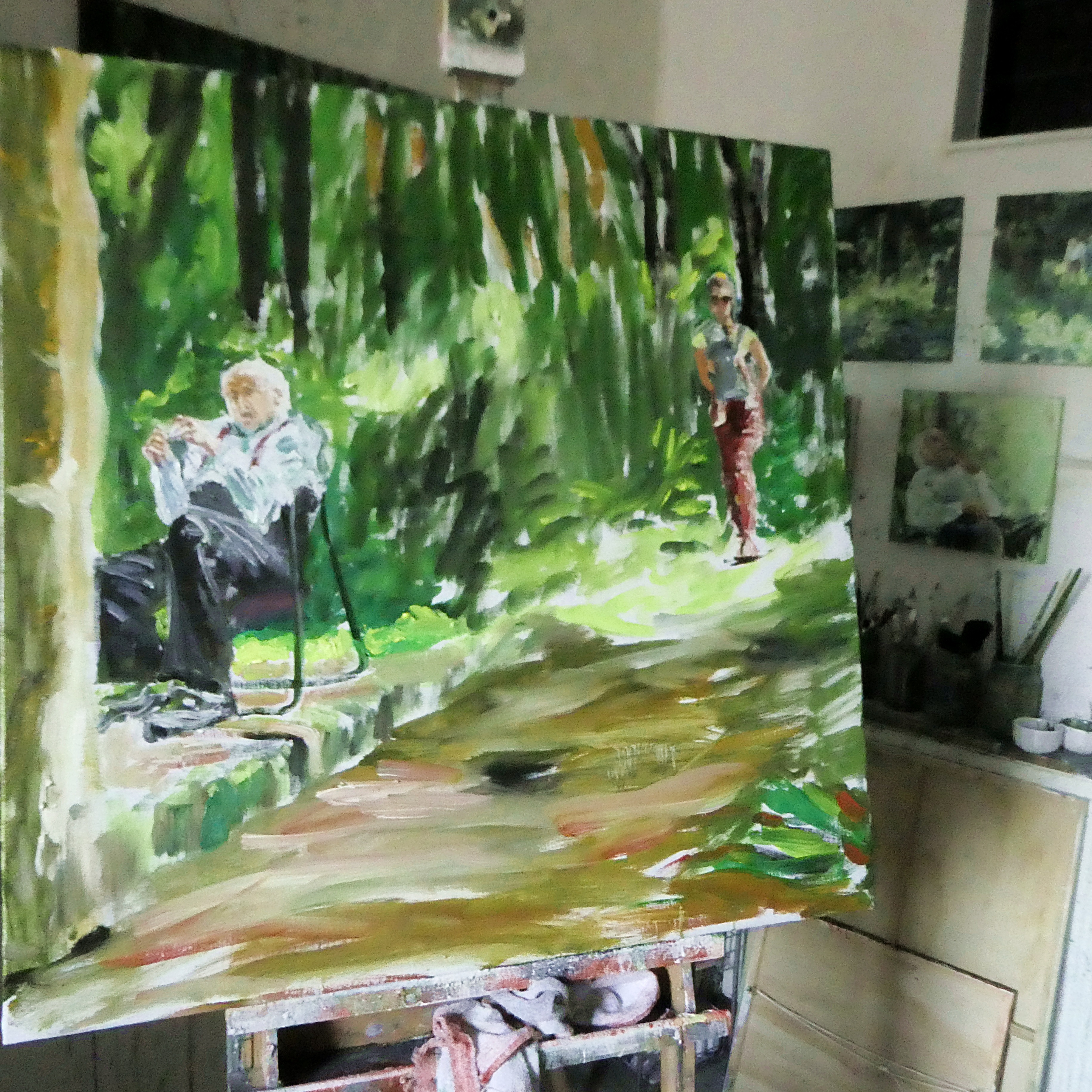 Above: (Painting in progress) First of June. Forest of Luffness 10. Oil on 12×12″″ canvas. Rose Strang 2025.
