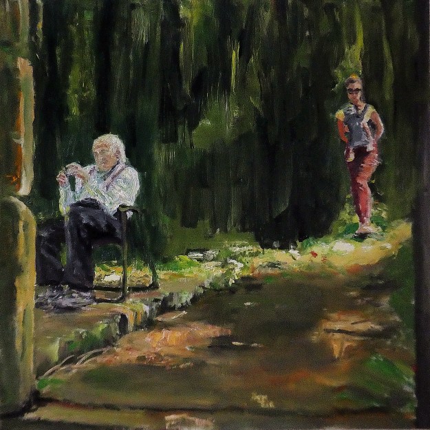 This is fairly small again at 12×12″ canvas. I took a still from film footage of our day at Luffness, from which I’m painting this portrait.