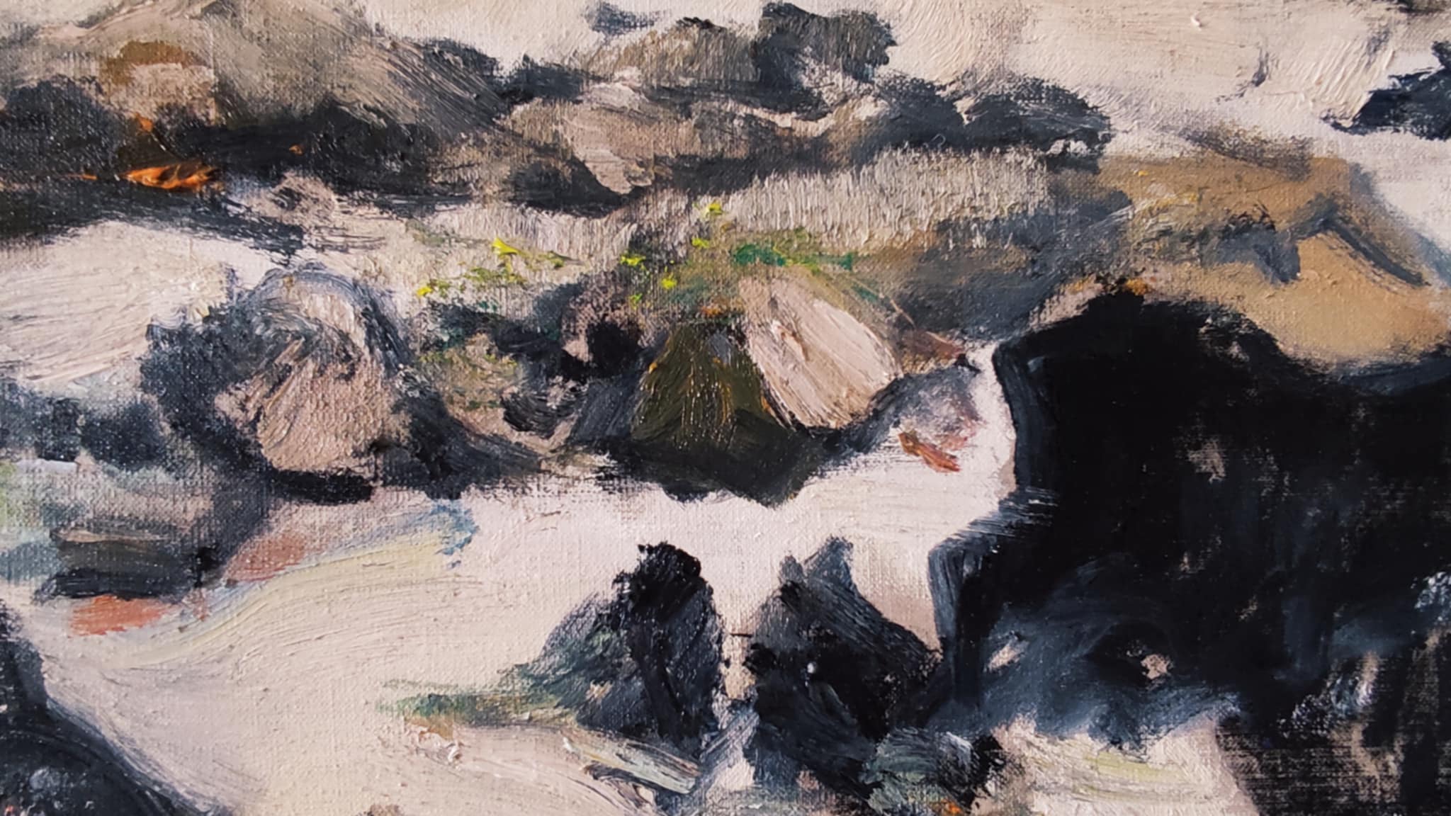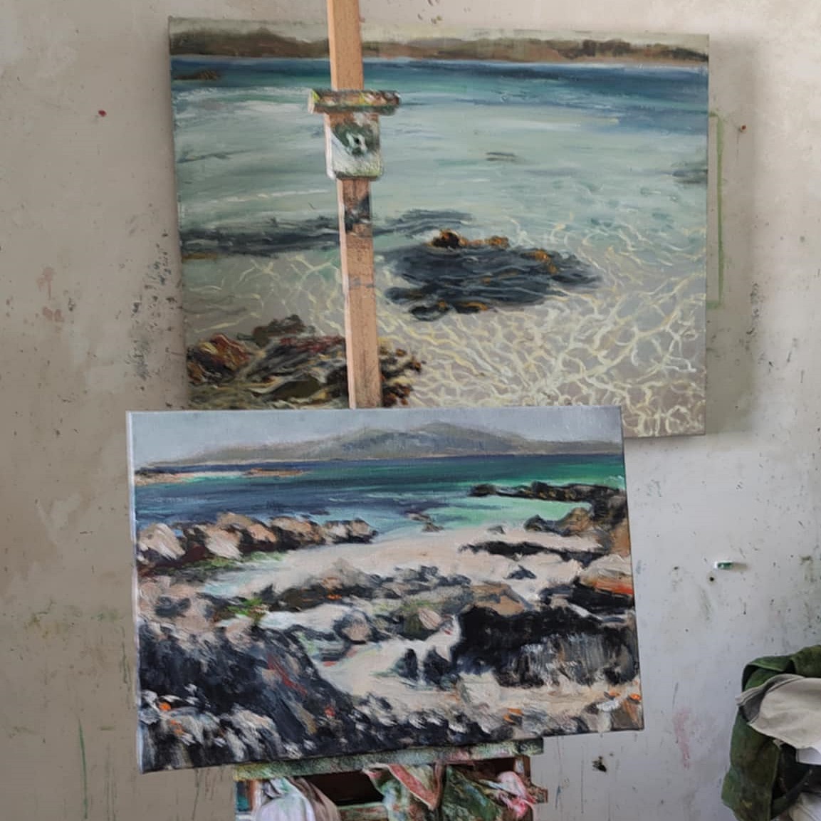 While there I’ll be sketching, painting and photographing for my next series, which will be some large, textured semi-abstract seascape paintings on unbleached linen for the Graystone Gallery, Edinburgh
