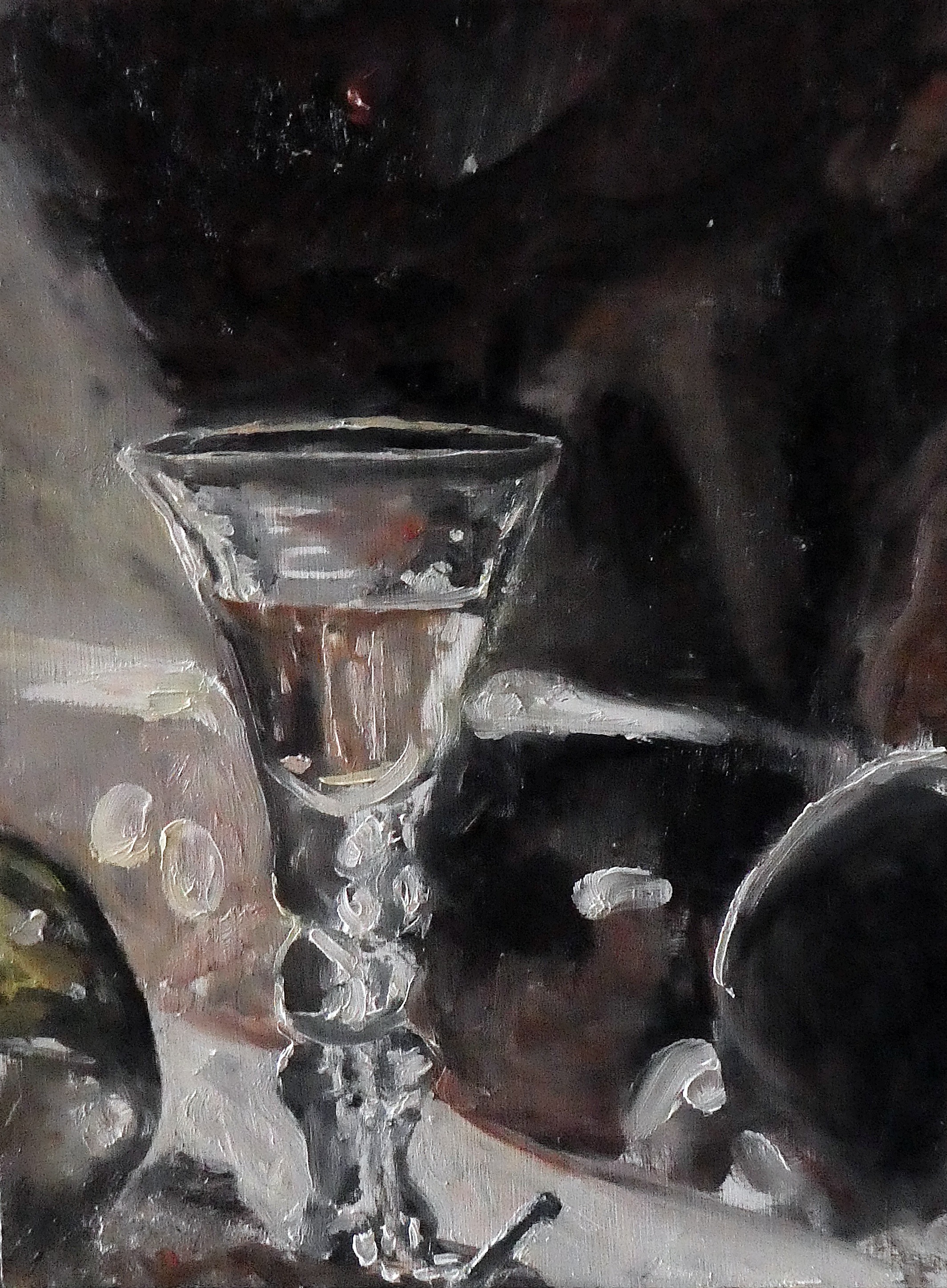 18th Century Baluster Wine Glass. Oil on 12 by 9 inch wood. Rose Strang 2025