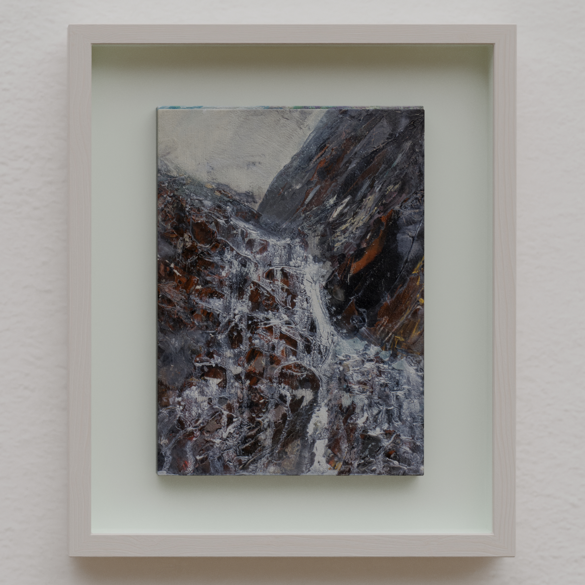 LivingM_FlowingFromGranite ← Previous Next → (Framed) ‘Flowing from granite. The Living Mountain Series’. Acrylic and oil on 30x21cm wood. Rose Strang 2021