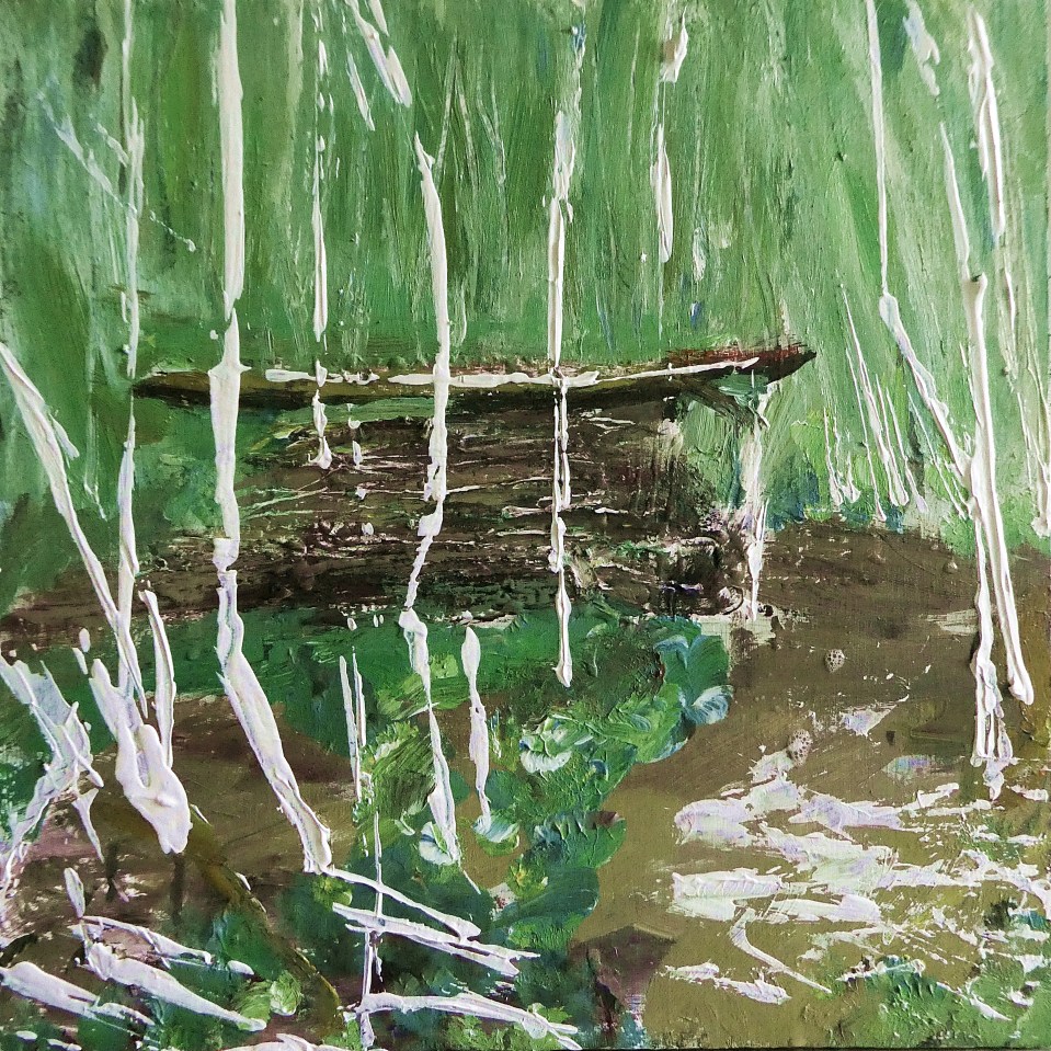 Birch Trees and Willow Shelter. Mixed media on 14×14″ wood. Rose Strang 2026. Next → Birch Trees and Willow Shelter. Mixed media on 14×14″ wood. Rose Strang 2026.