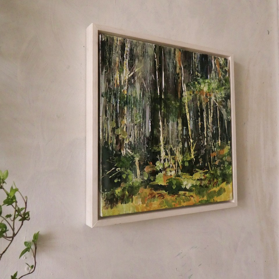 ‘Birch Forest’. Fairhill. Mixed media on 14×14″ wood. Rose Strang 2026