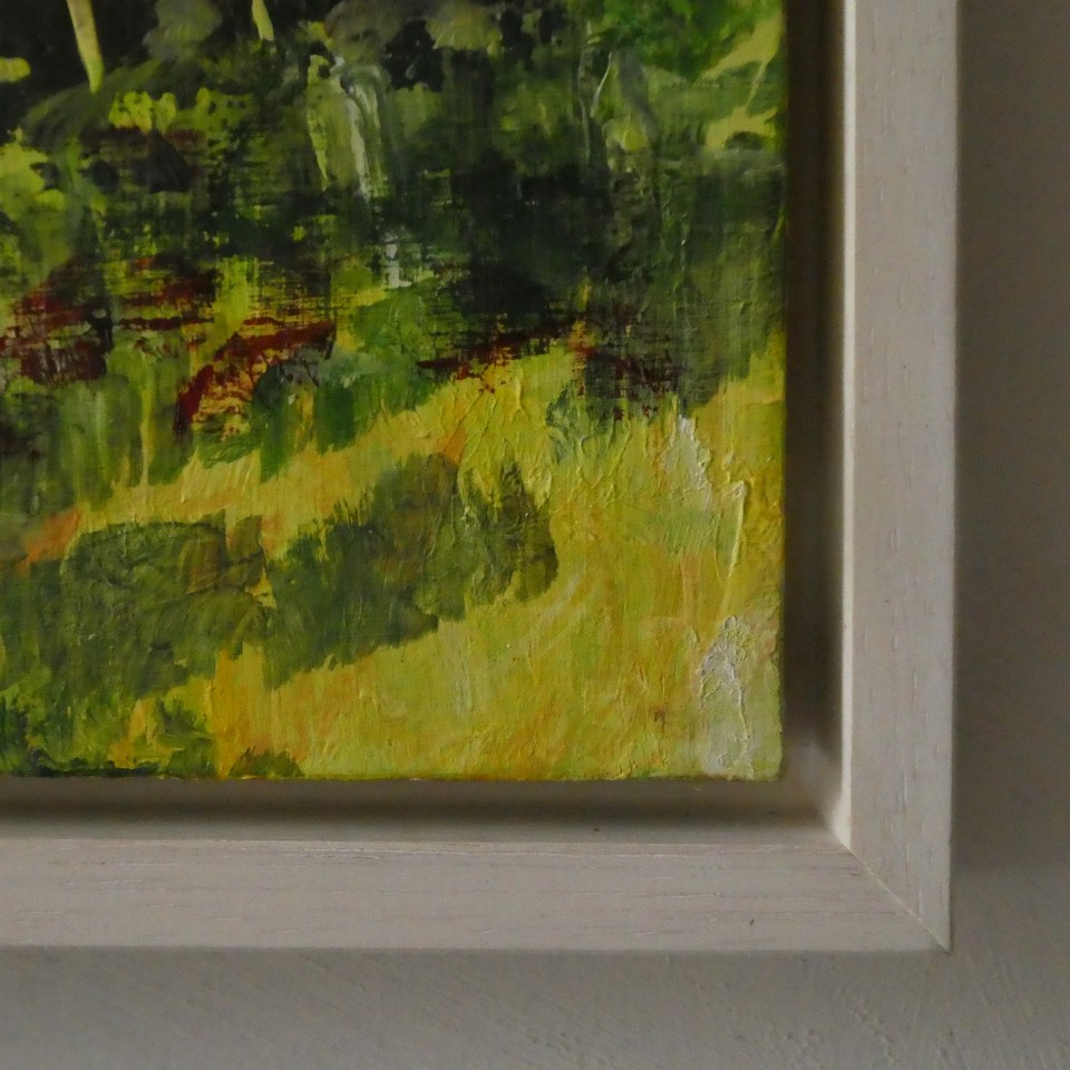 (detail) ‘Birch Forest’. Fairhill. Mixed media on 14×14″ wood. Rose Strang 2026