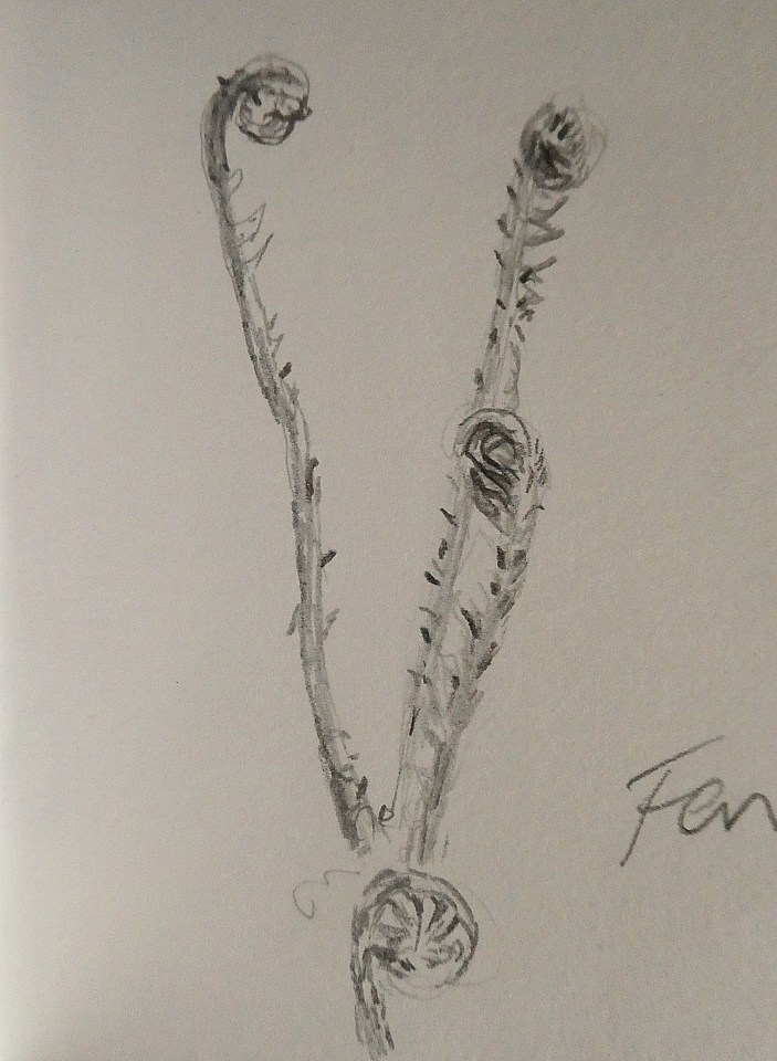 Fern. 18th April. Penci on 5×5 inch paper. Rose Strang 2026