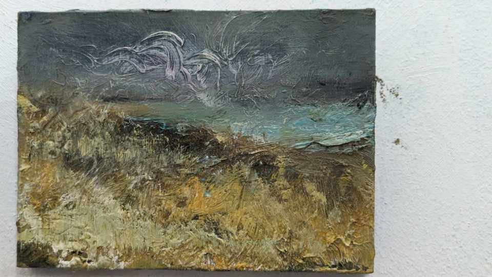 Aberlady. Winter I. Oil on 8×5.5 inch wood. Rose Strang 2024