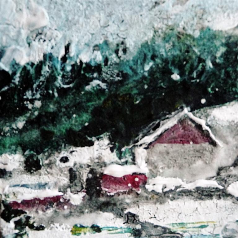 ‘Shed and Forest’. Mixed media on 3.5×3.5″ wood