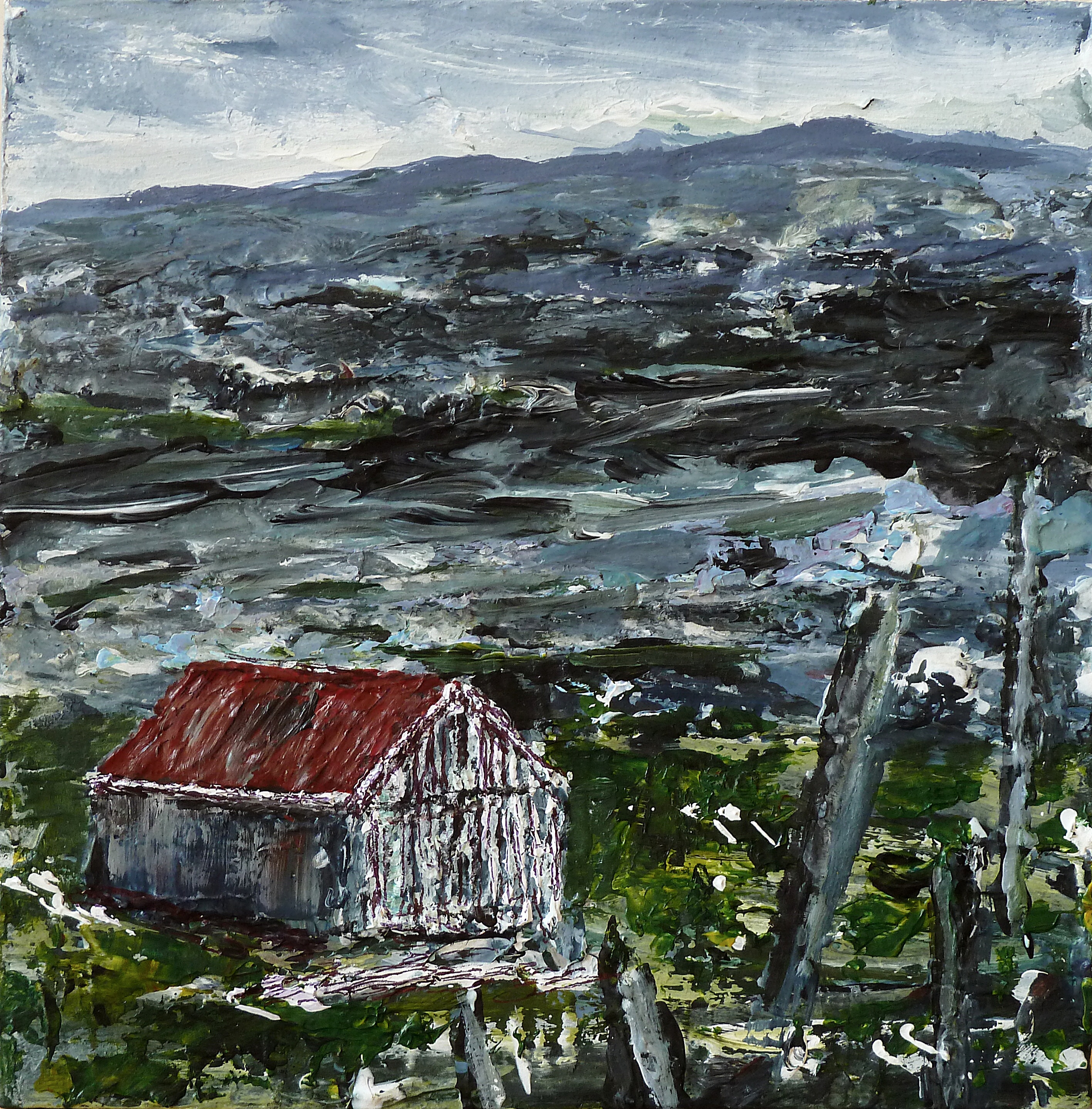 Sold. ‘Harris (Red Roof 1)’. Mixed media on 5×5″ wood. Rose Strang 2016Sold. ‘Harris (Red Roof 1)’. Mixed media on 5×5″ wood. Rose Strang 2016